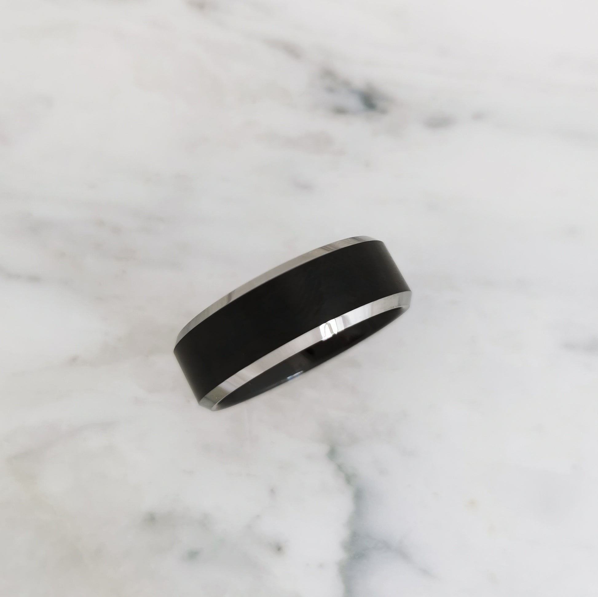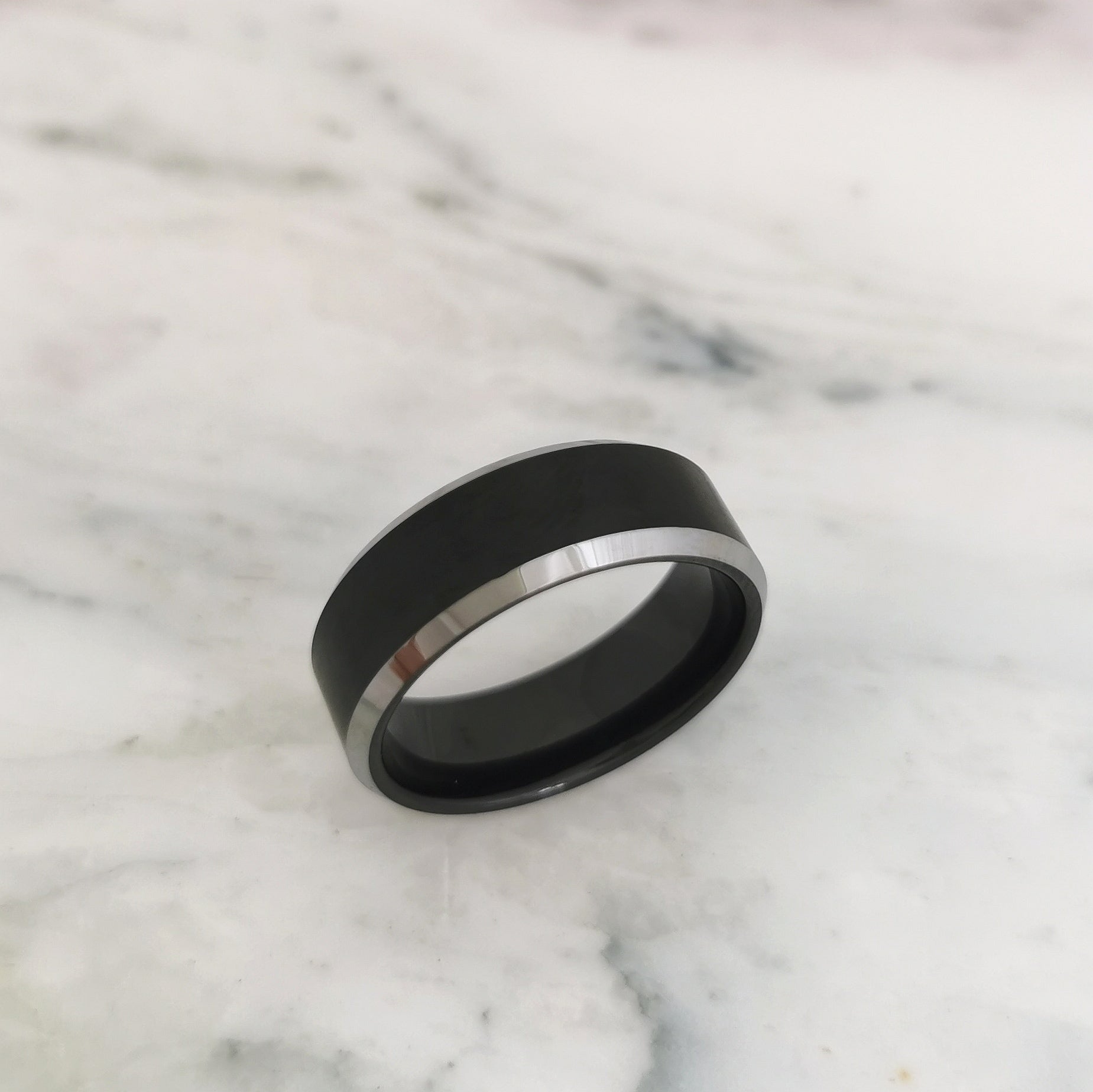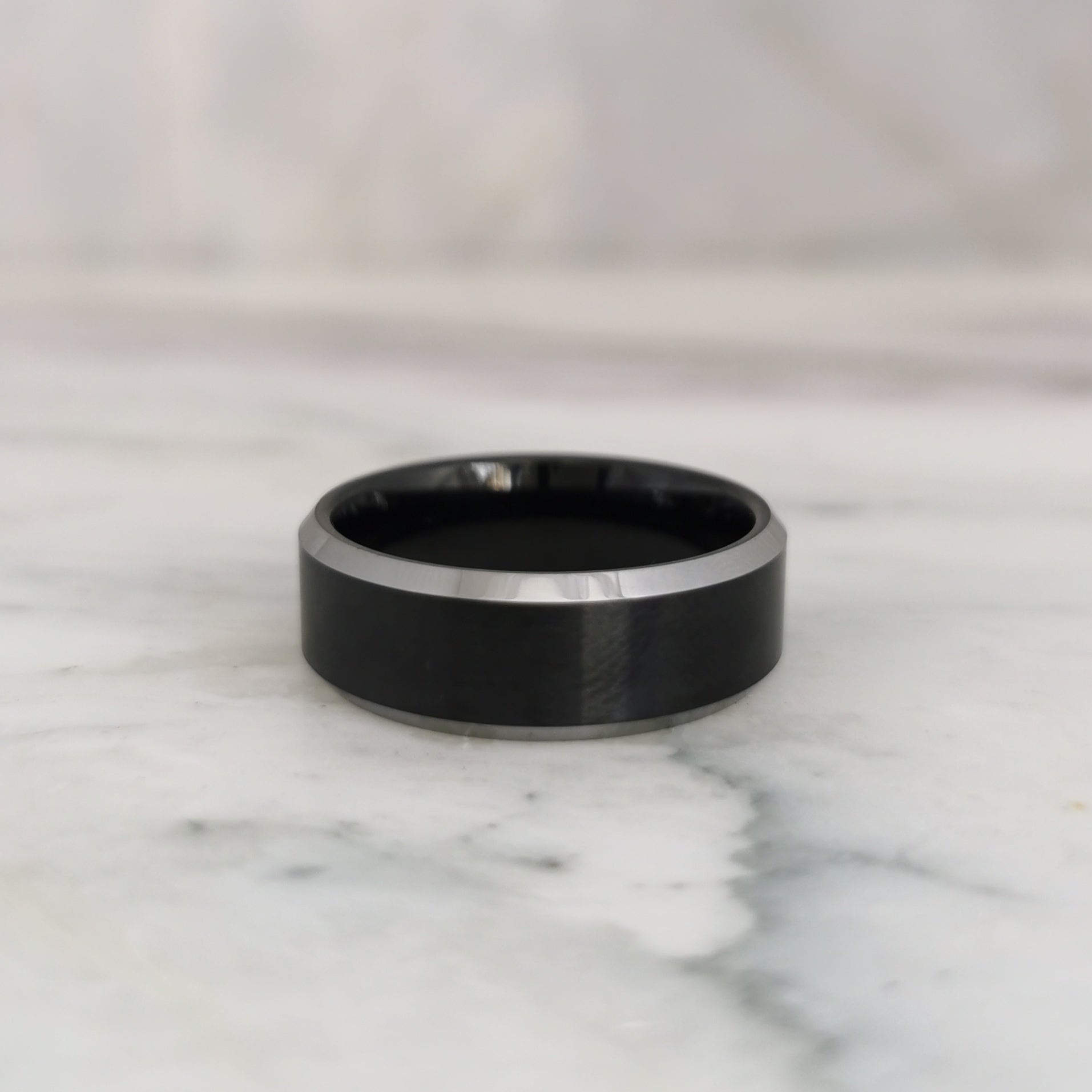 8mm Matt Black Tungsten Ring with Polished Bevelled Edges