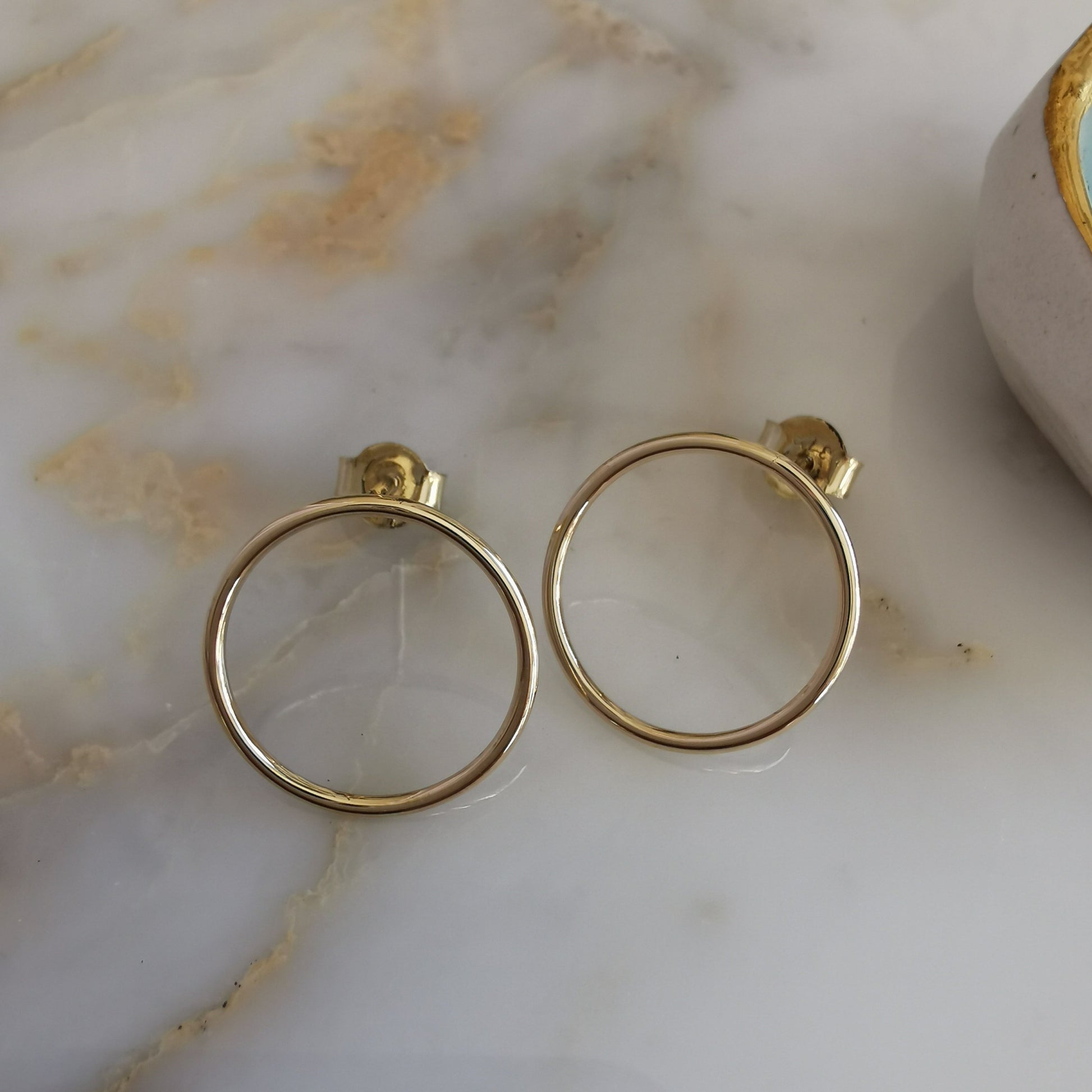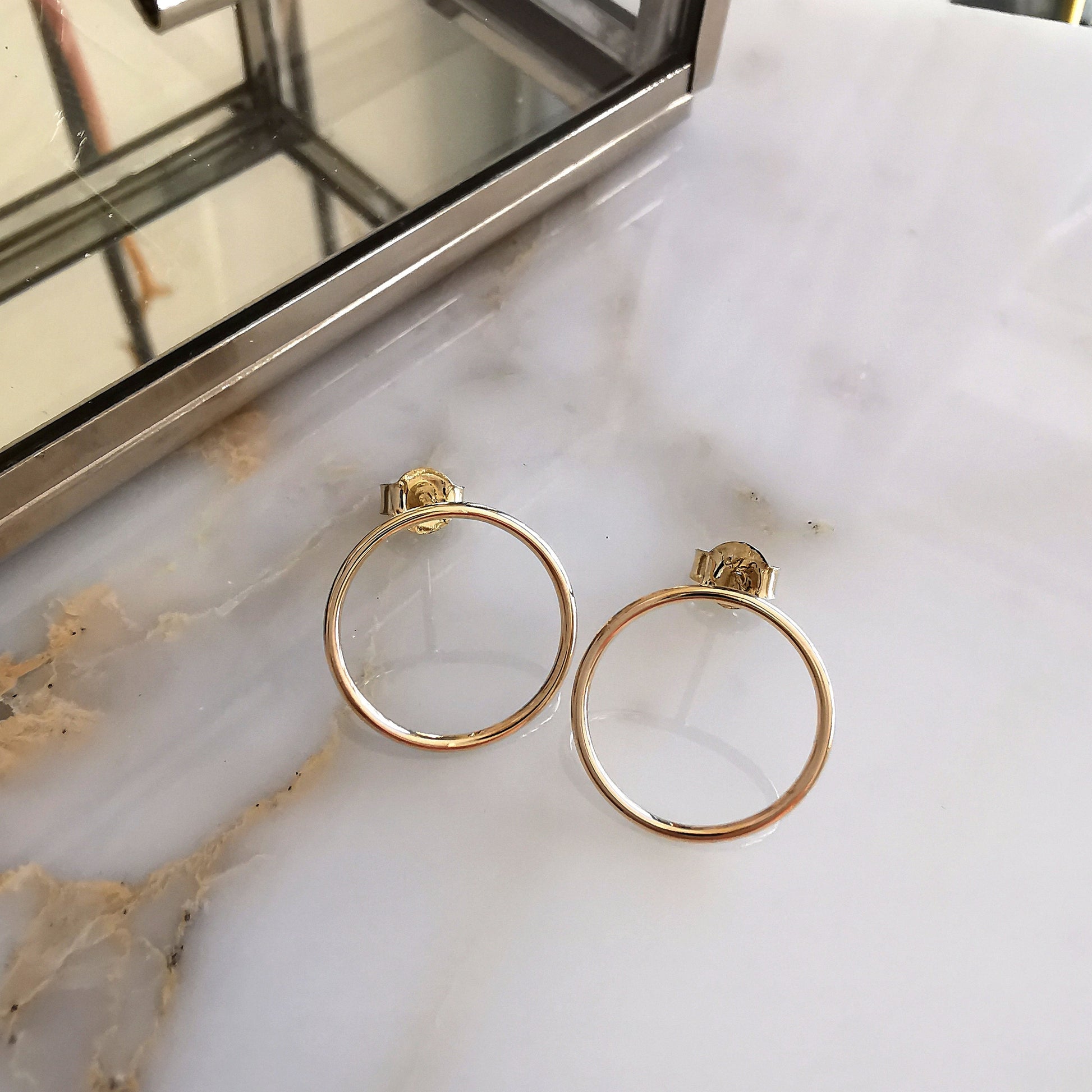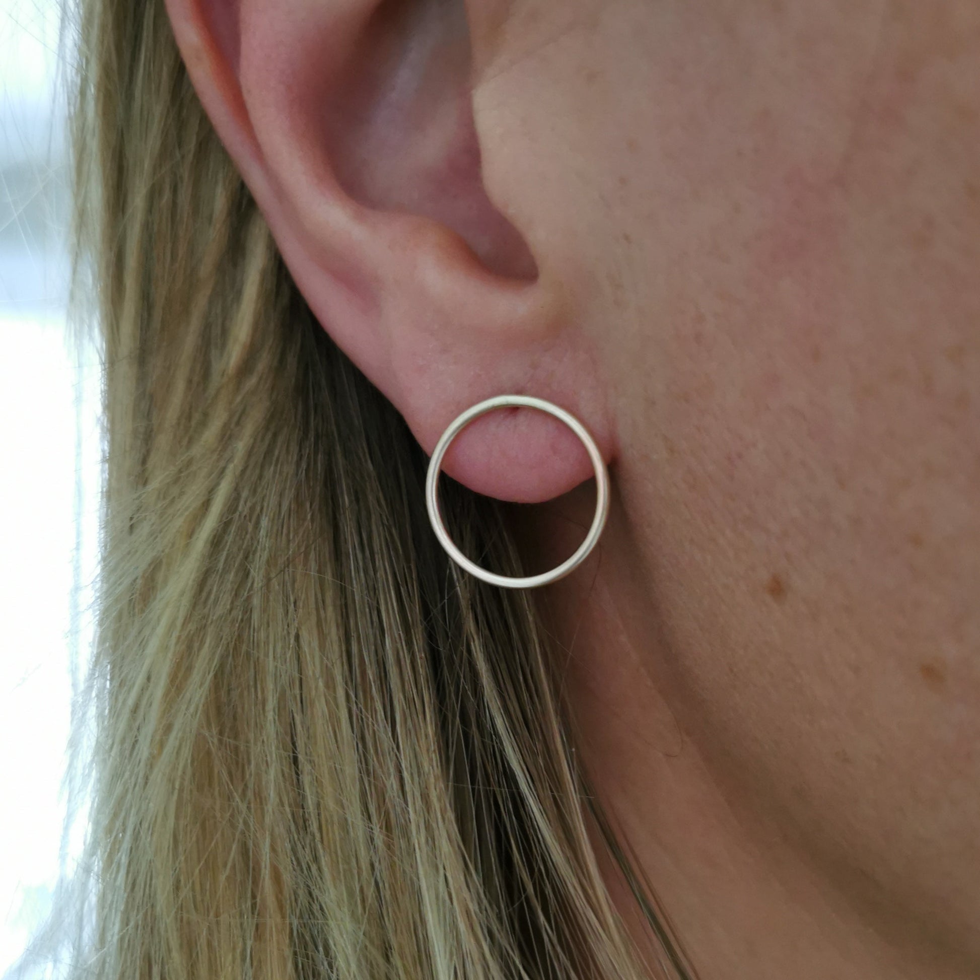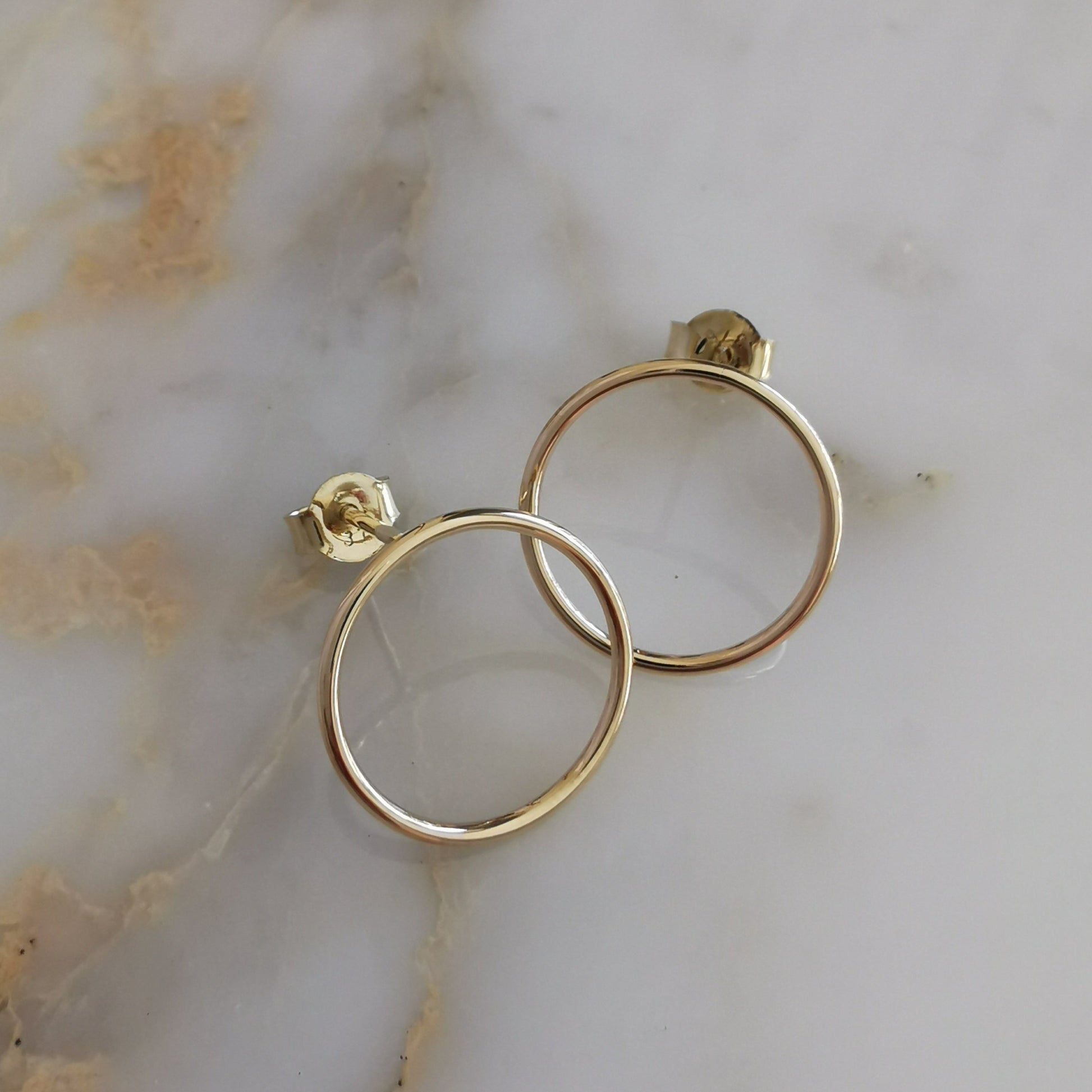 These Circle Studs are hand-made out of solid 9ct Yellow Gold.