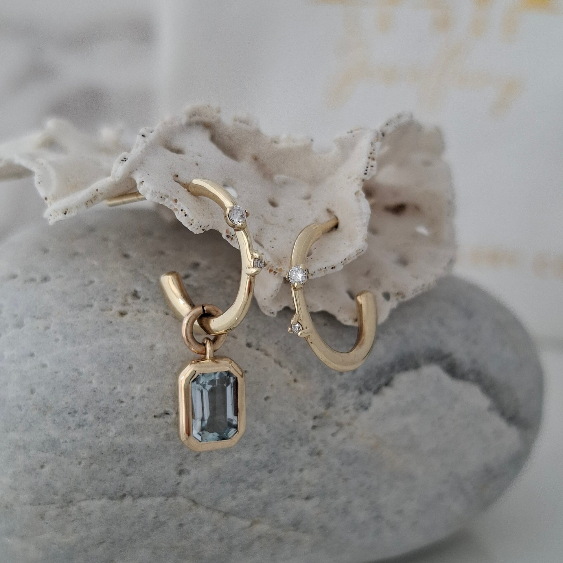 Select the diamond glisten hoops, tapered huggies, or rectangular huggies and add your favourite gem charms for that extra bit of flare!