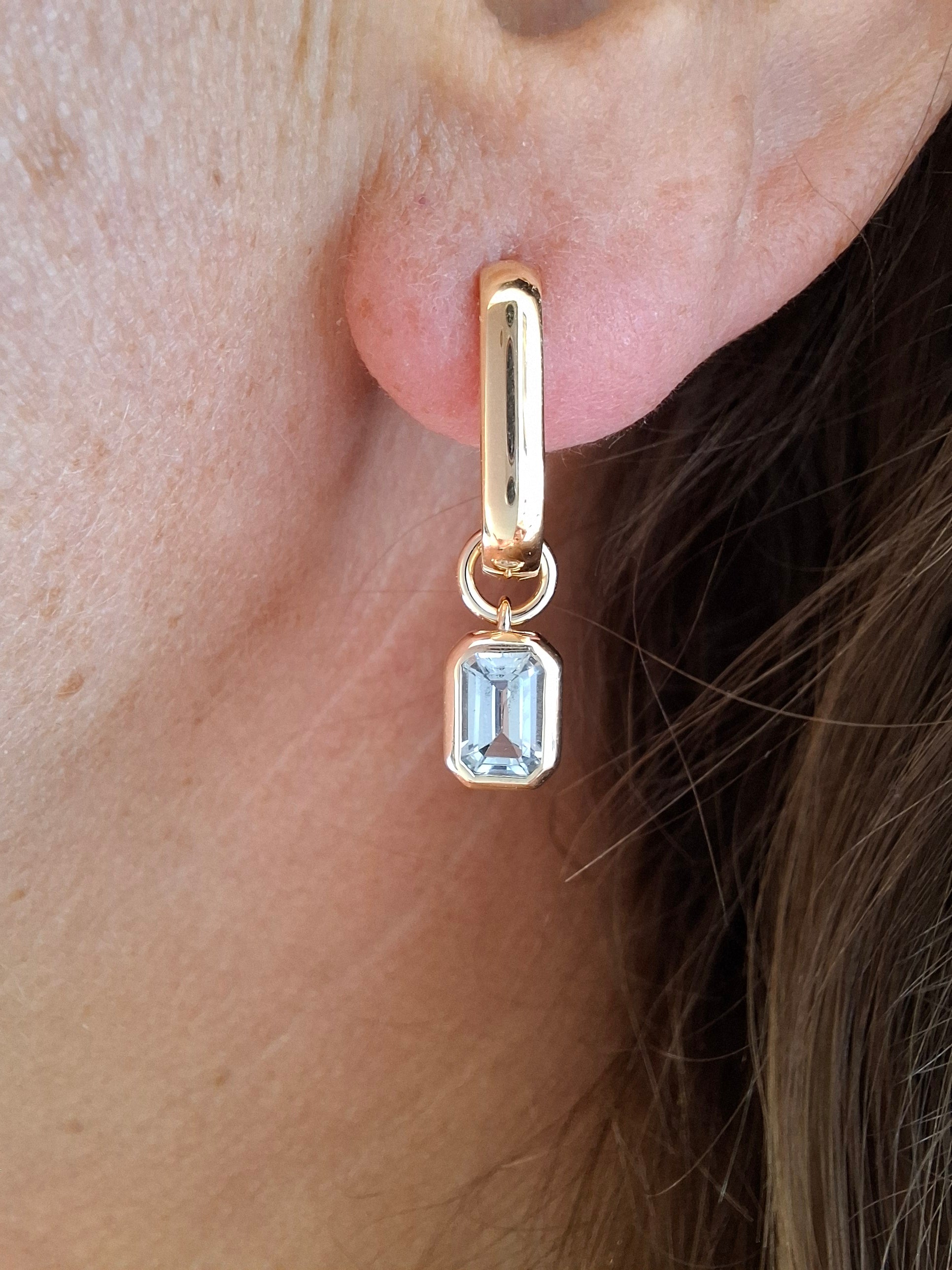 Personalize your chosen hoops with a pair of elegant emerald cut Sky Blue Topaz earring attachments.