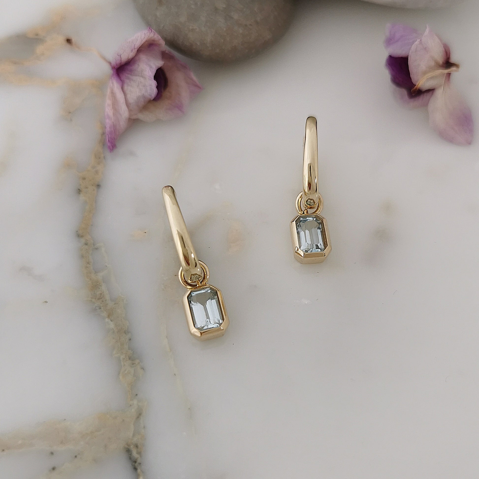 The attachments consist of 2 x 6mm by 4mm Emerald Cut Sky Blue Topaz gemstones, set in solid 9ct yellow gold, 9ct blush gold, 9ct rose gold, or sterling silver.