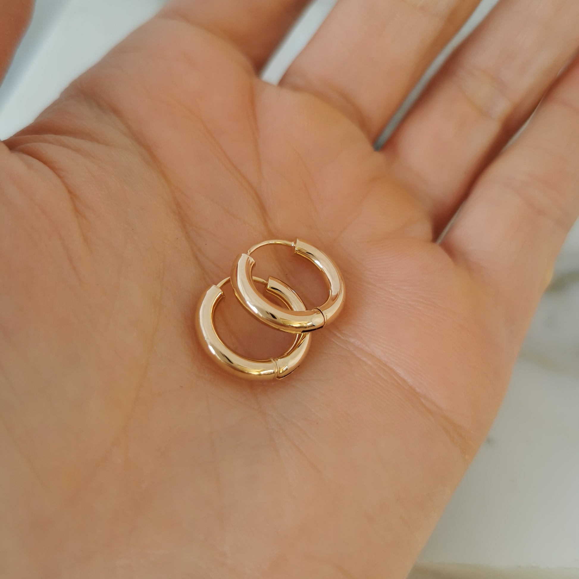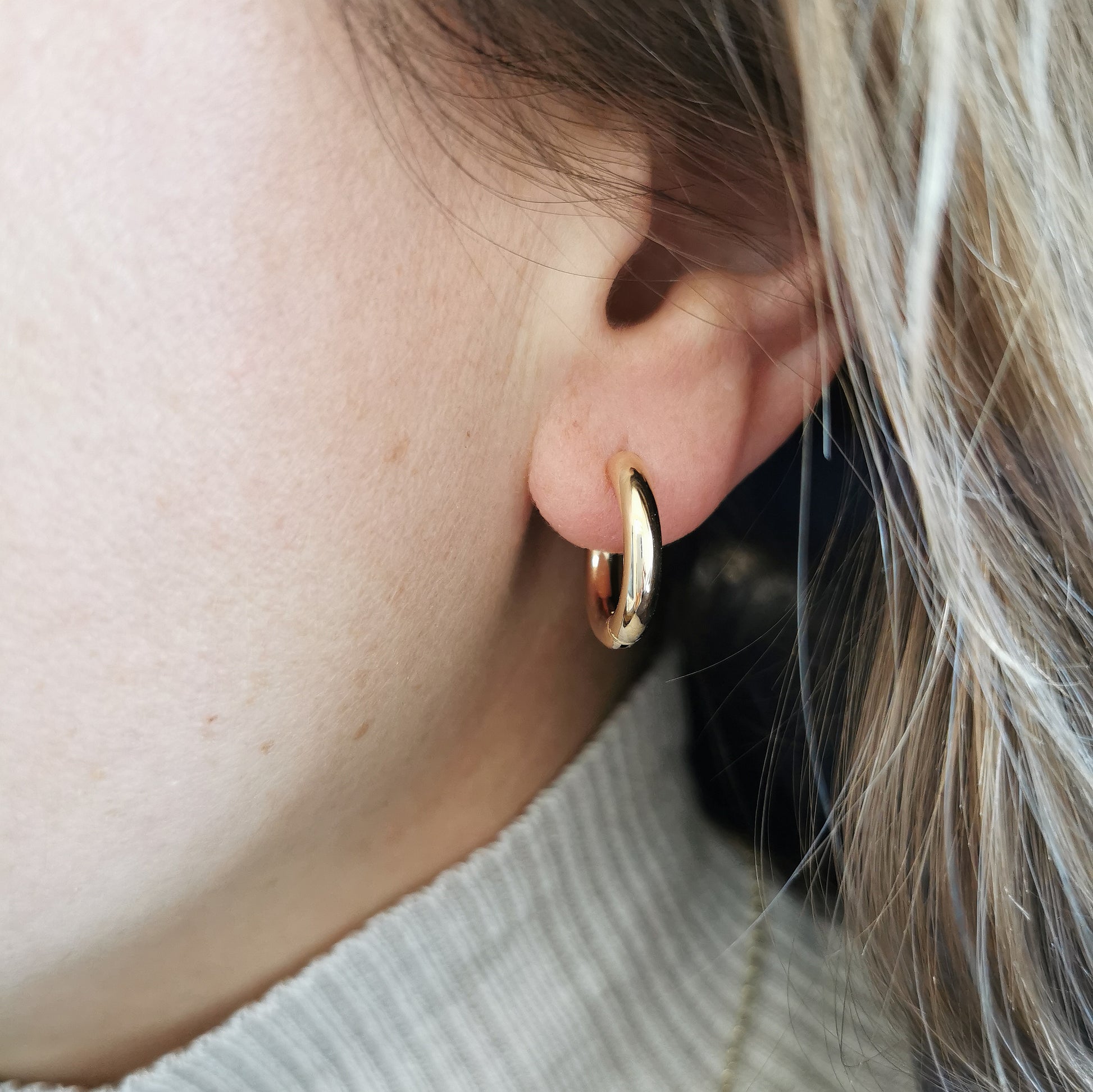 With an outer diameter of 16.7mm, and a thickness of 2.9mm, these gold hoops can be worn with any hairstyle and certainly won't go unnoticed.