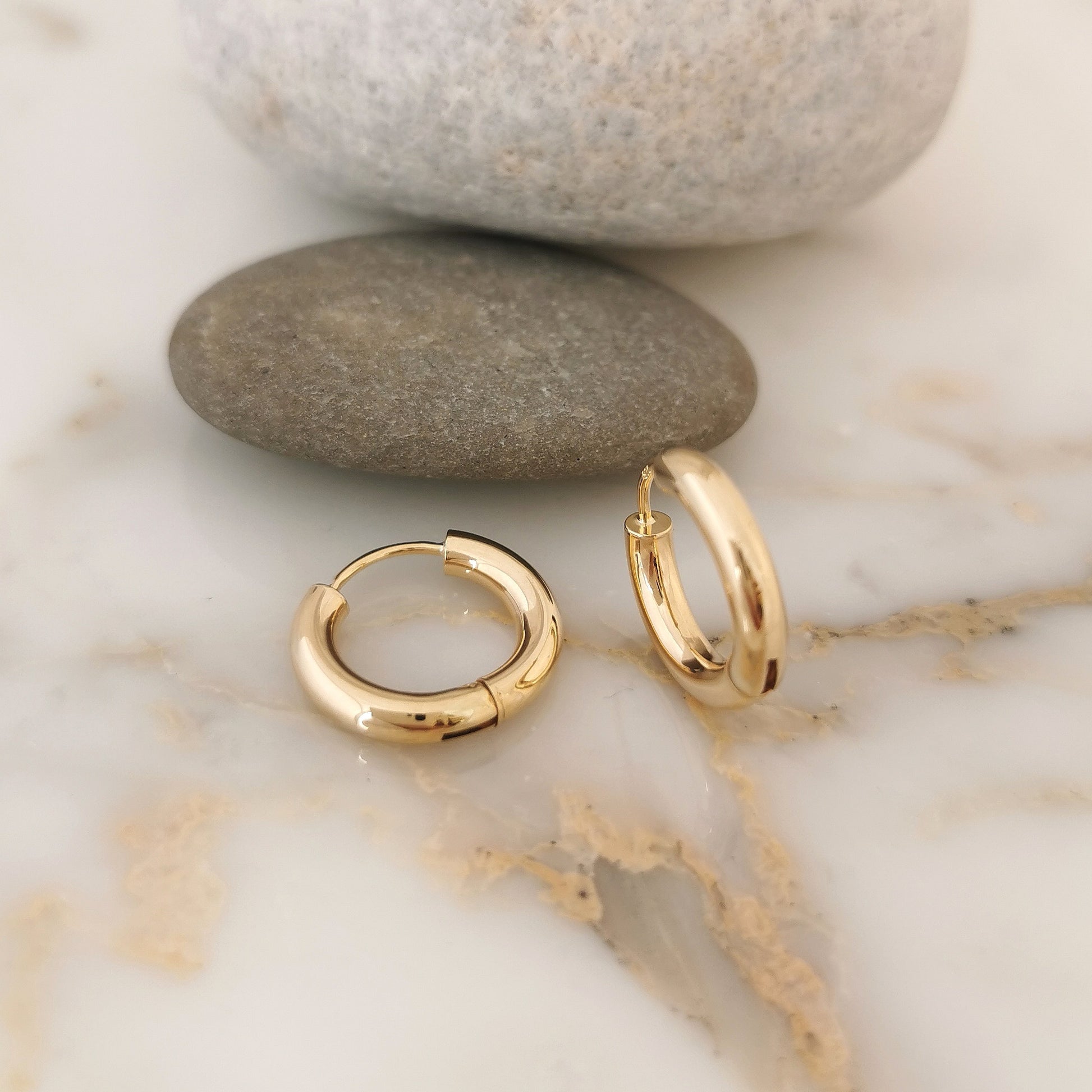Solid 9ct yellow gold chunky huggie hoops - stylish and durable!