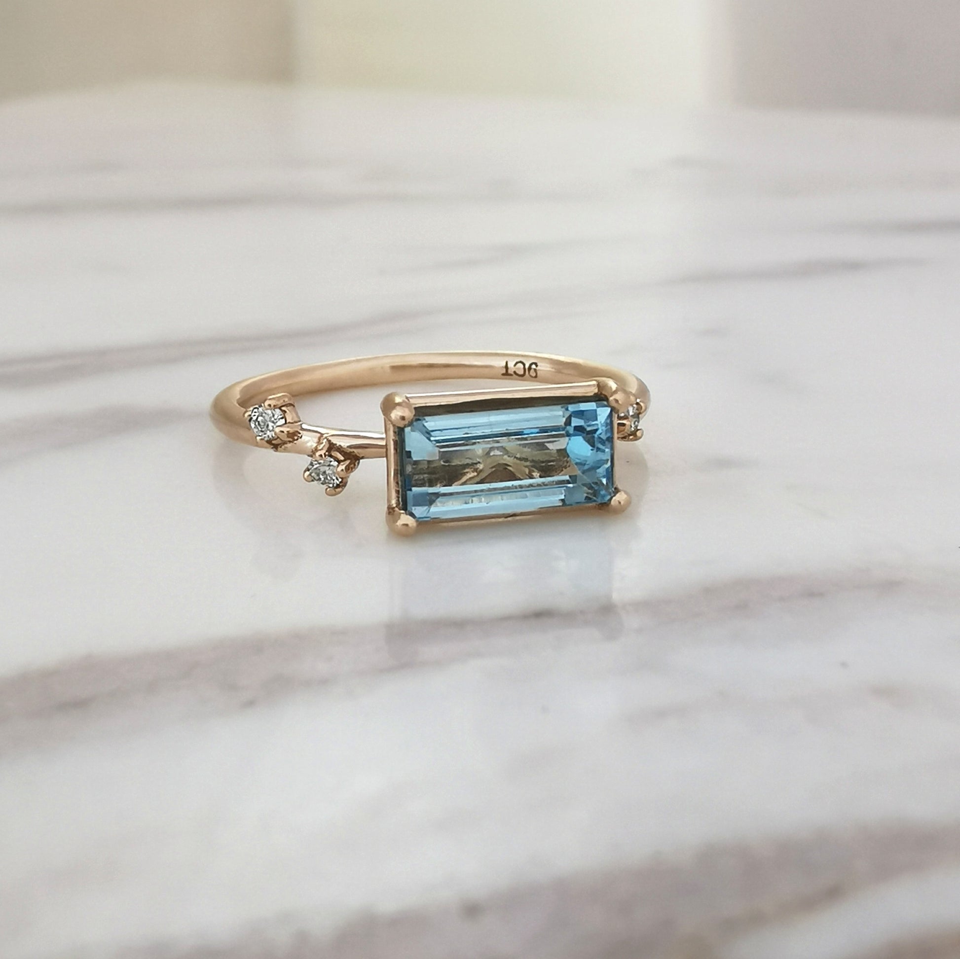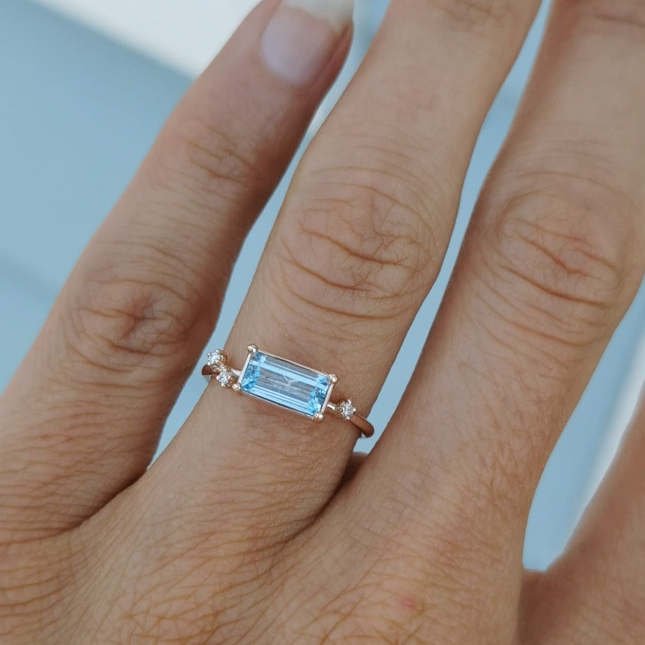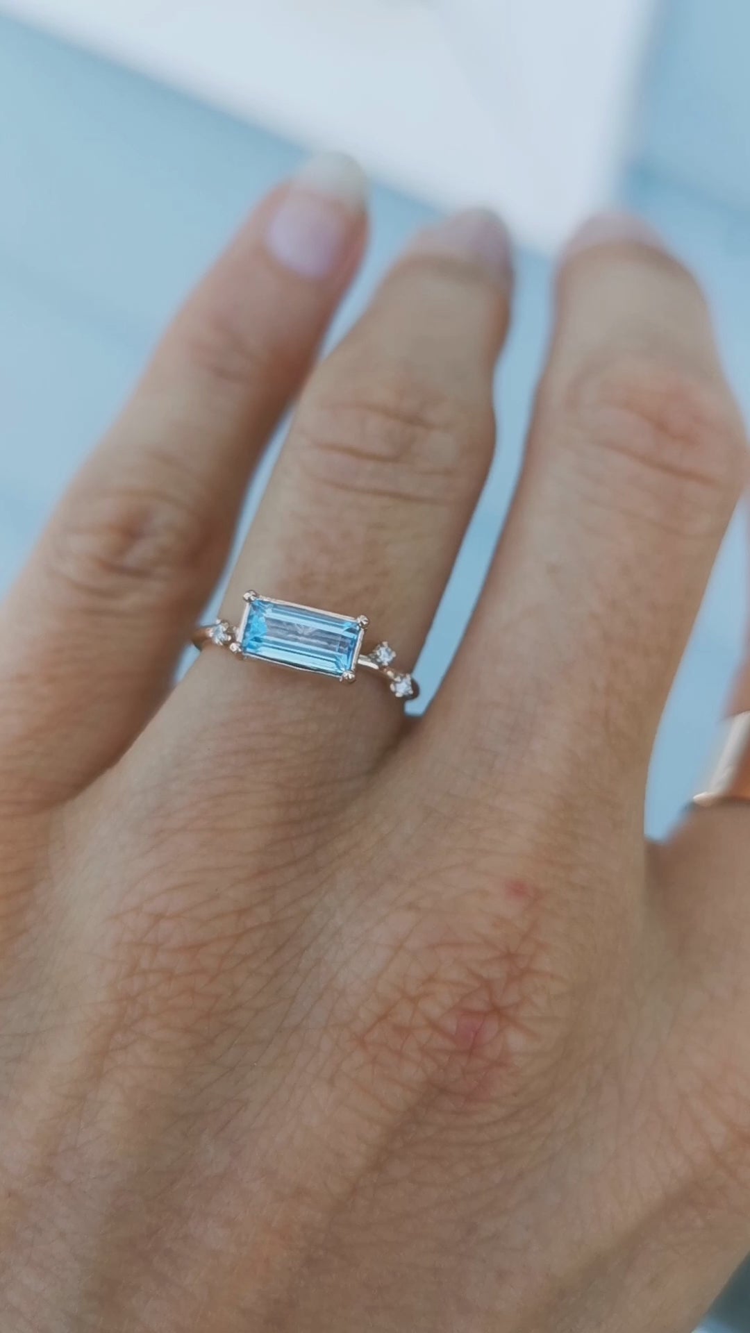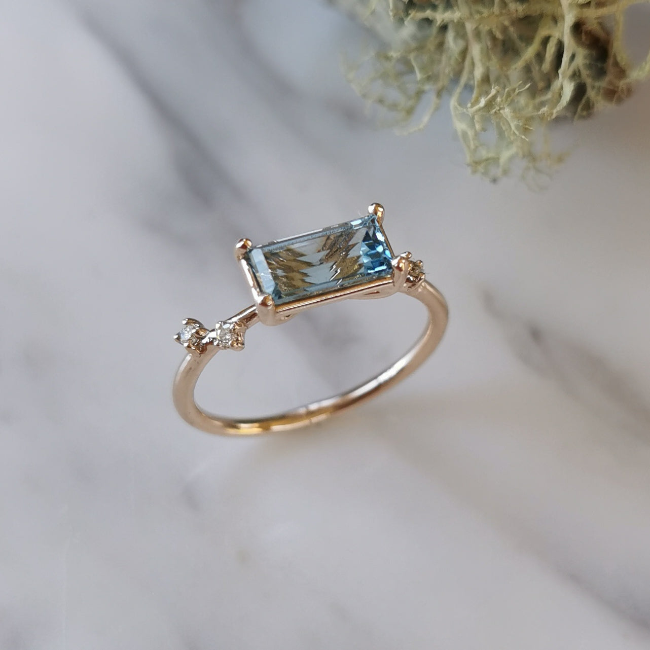 Sky Baguette Cut Blue Topaz & Diamond Ring
