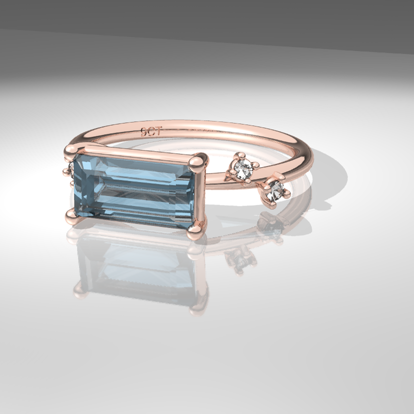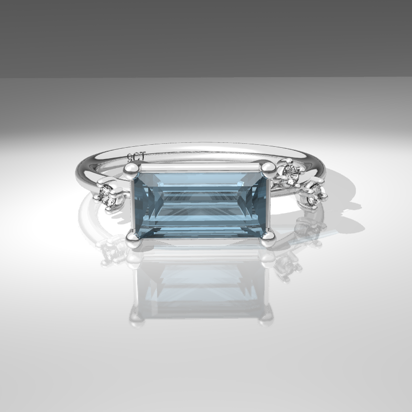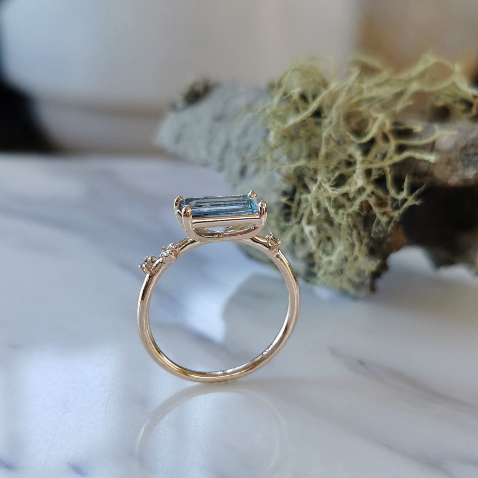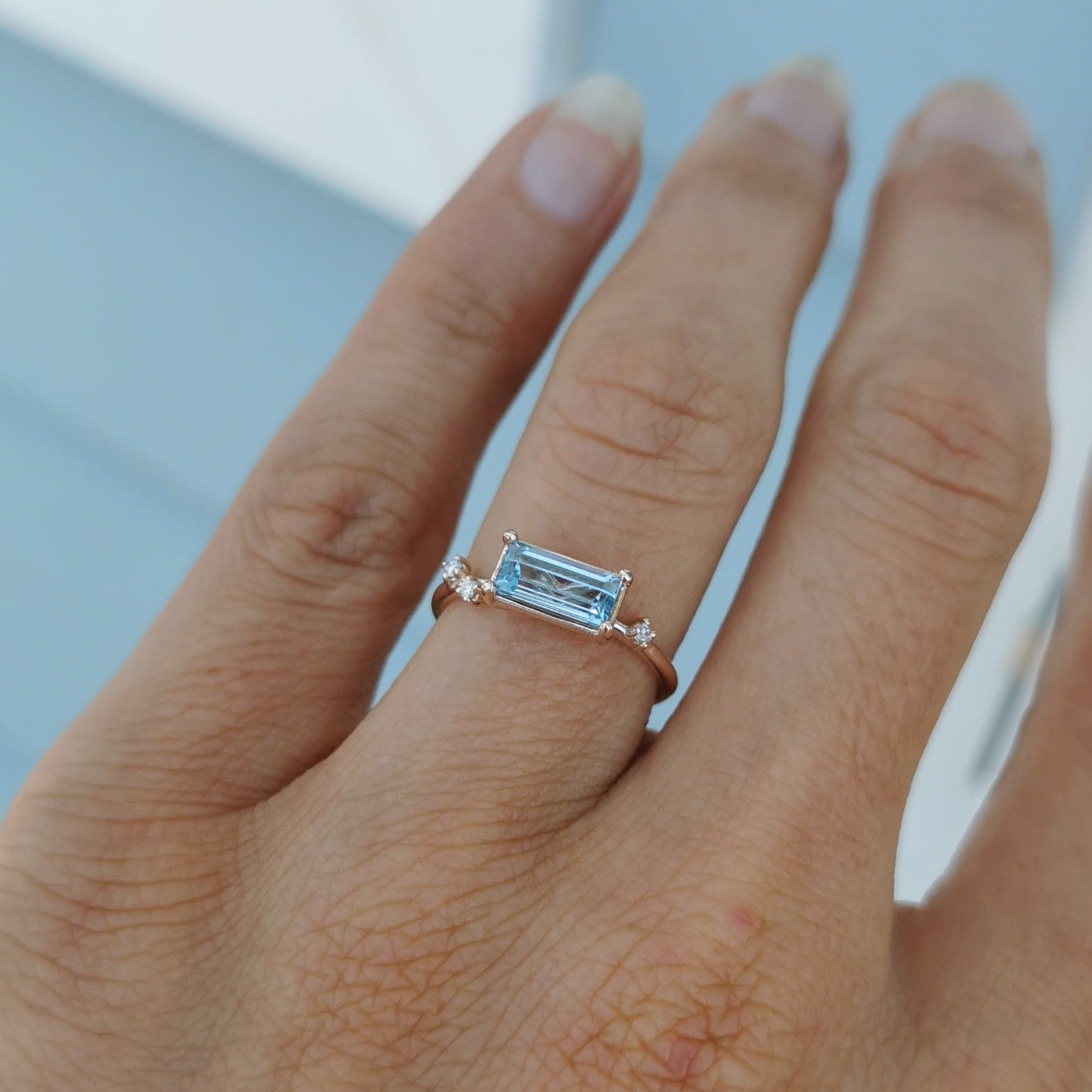 Sky Baguette Cut Blue Topaz & Diamond Ring
