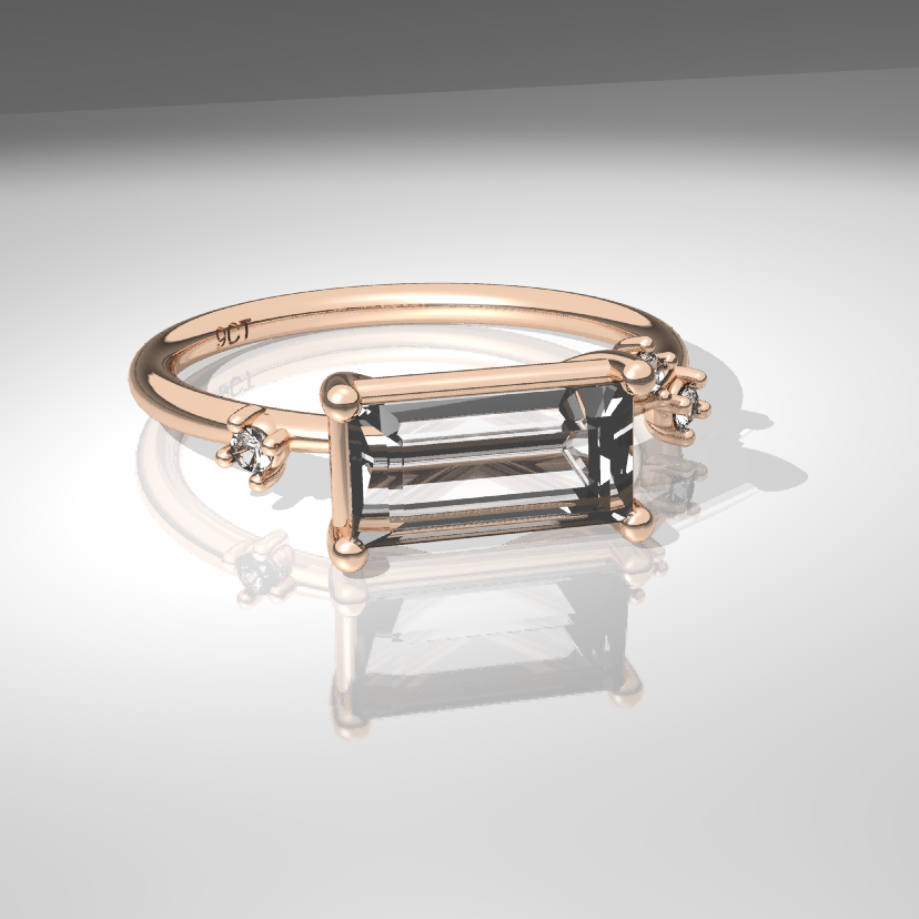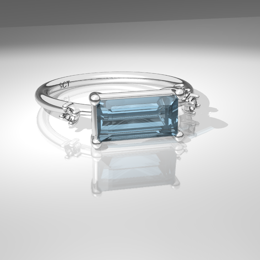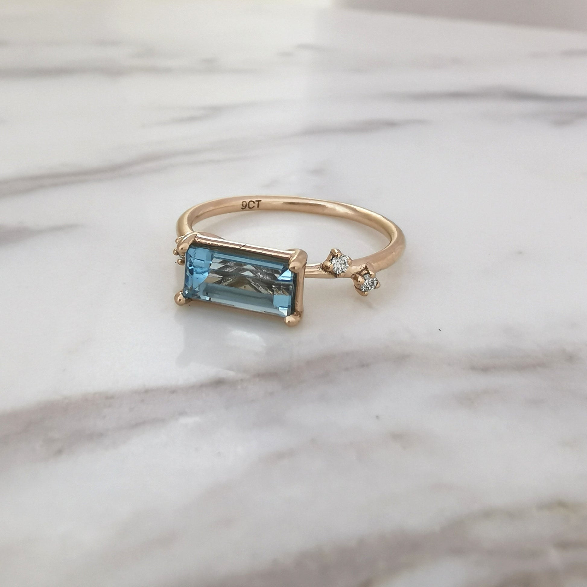 Set with a striking skinny Baguette Cut Blue Topaz - this beauty is truly something special and unique.