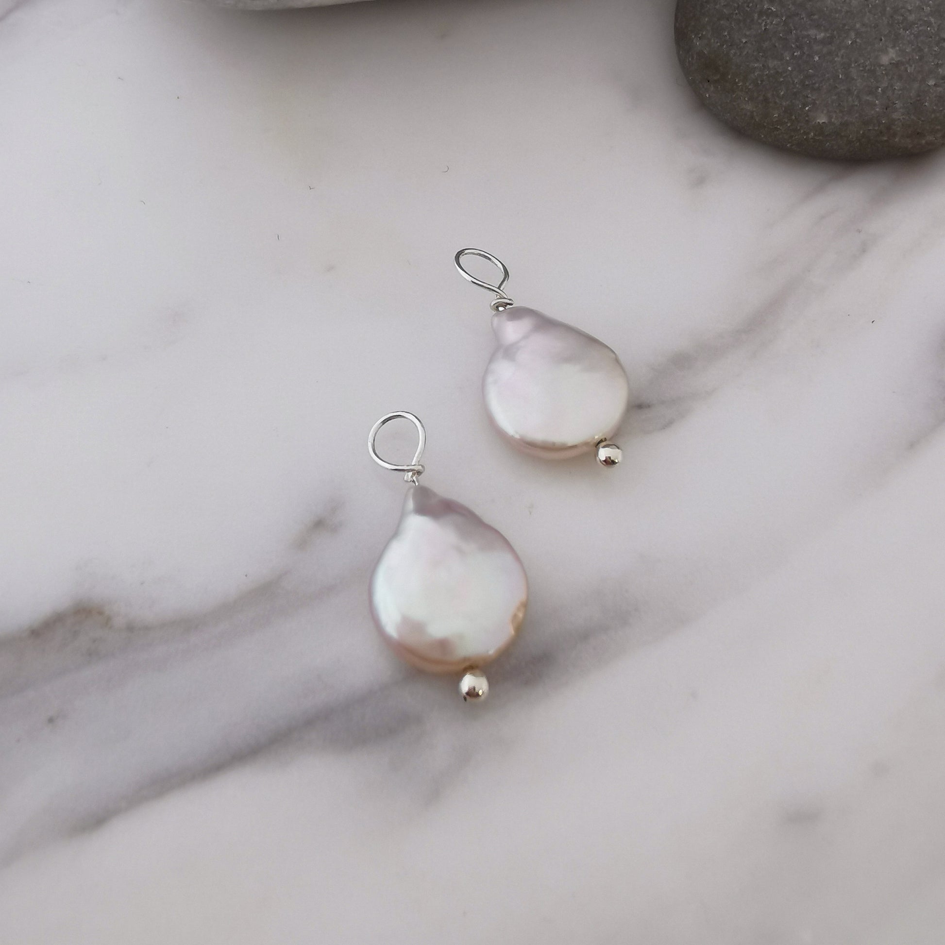 Elevate your outfit with a pair of elegant blush Pearl Drops for silver hoops.