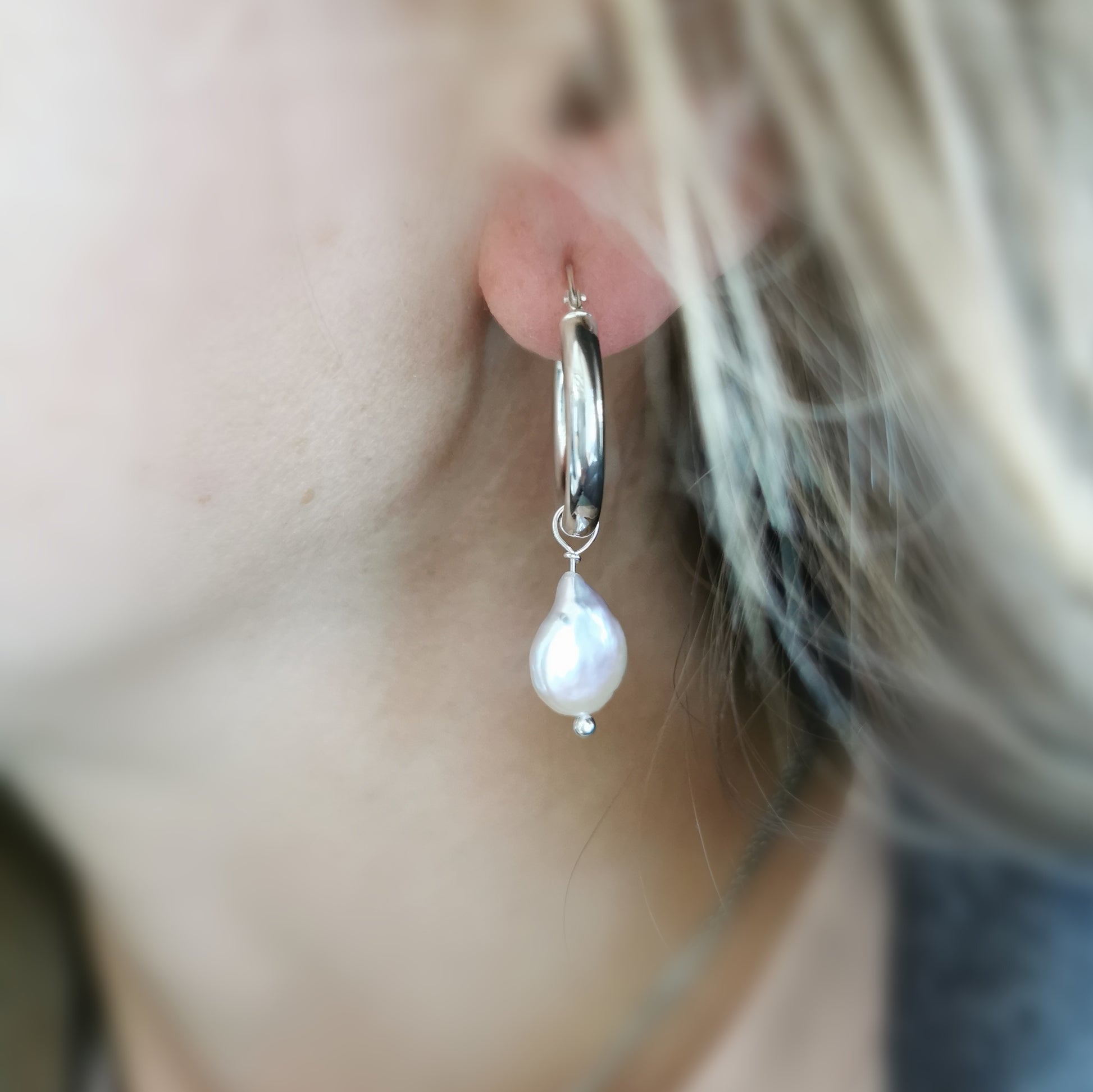 Please note that this purchase is exclusively for the pearl drops, the silver hoops are sold separately.