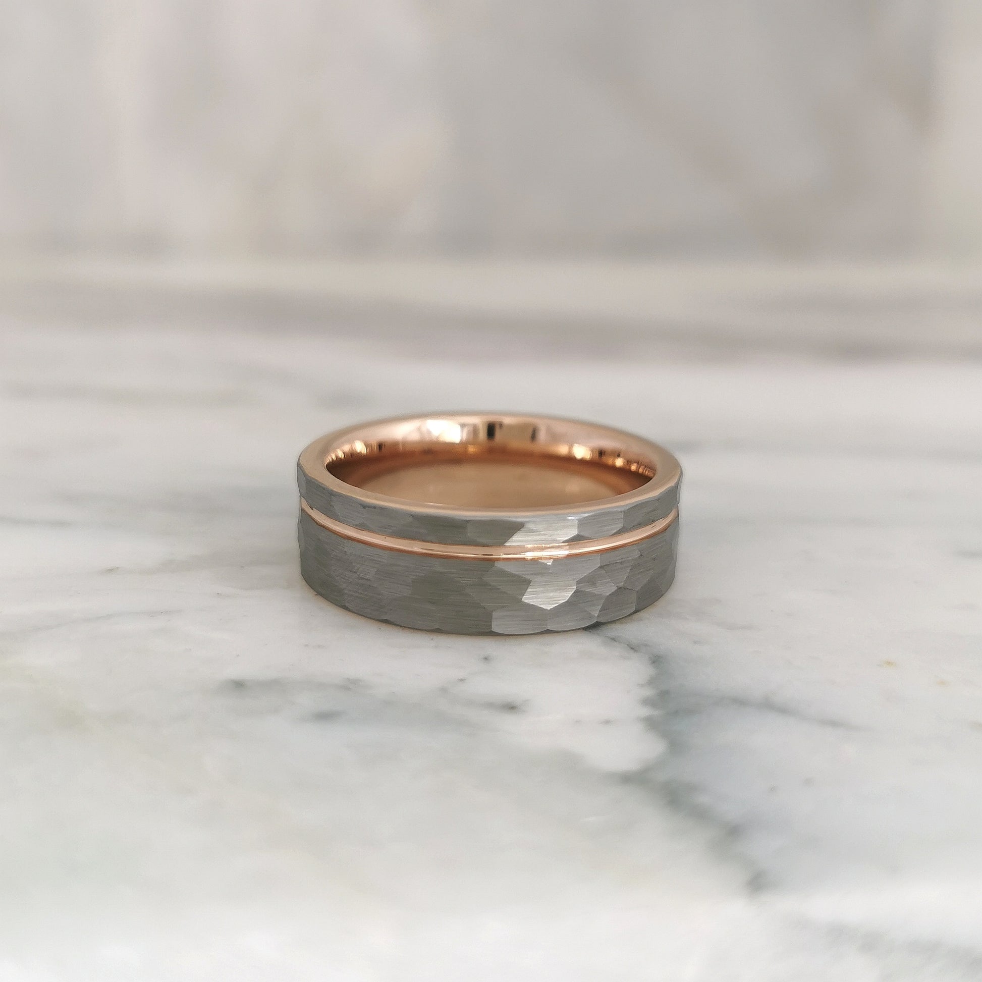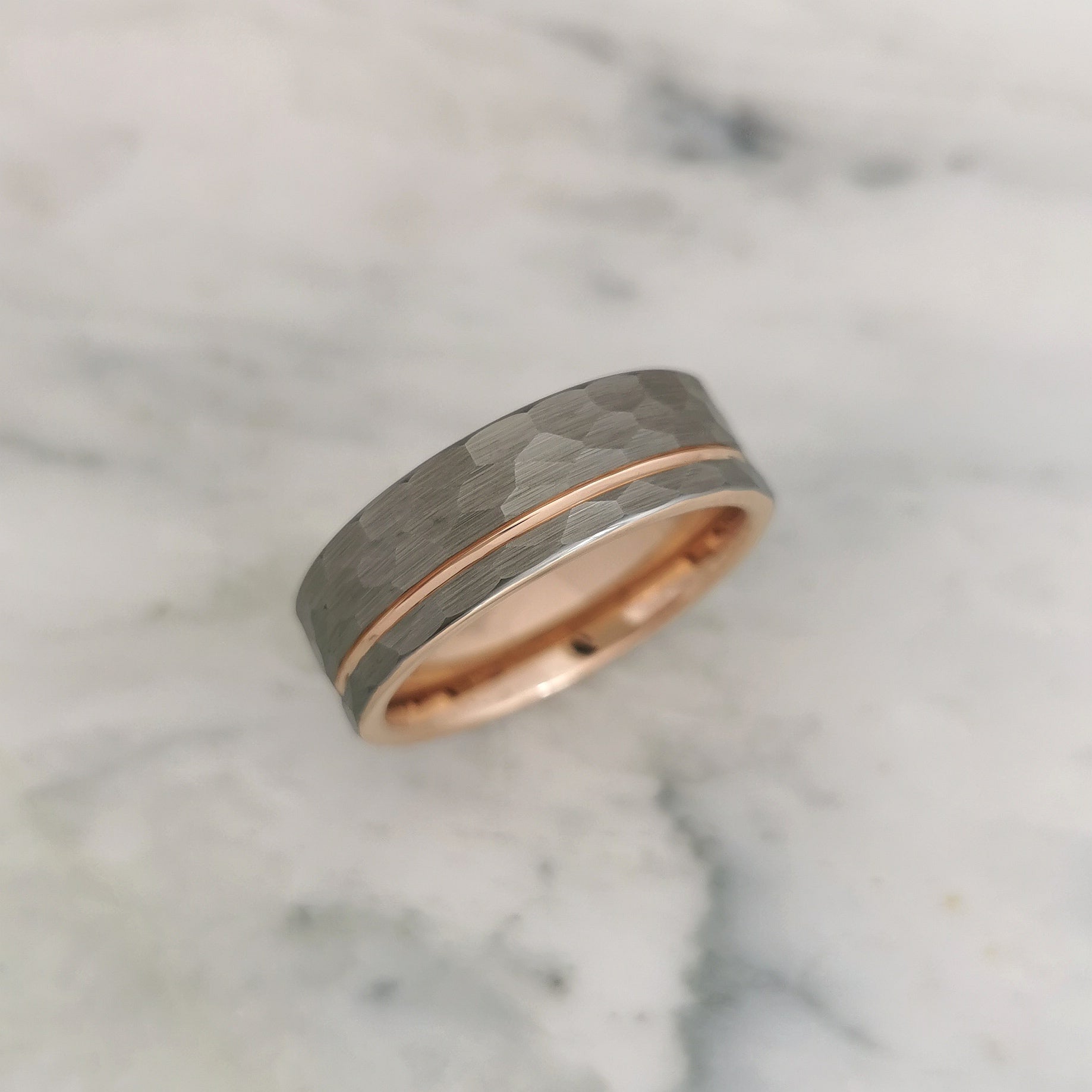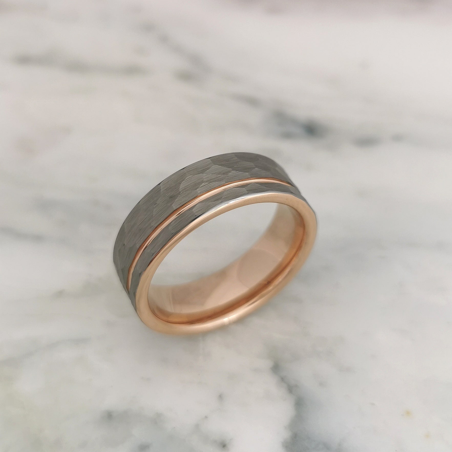 8mm Textured Tungsten Ring with Rose Gold Plating