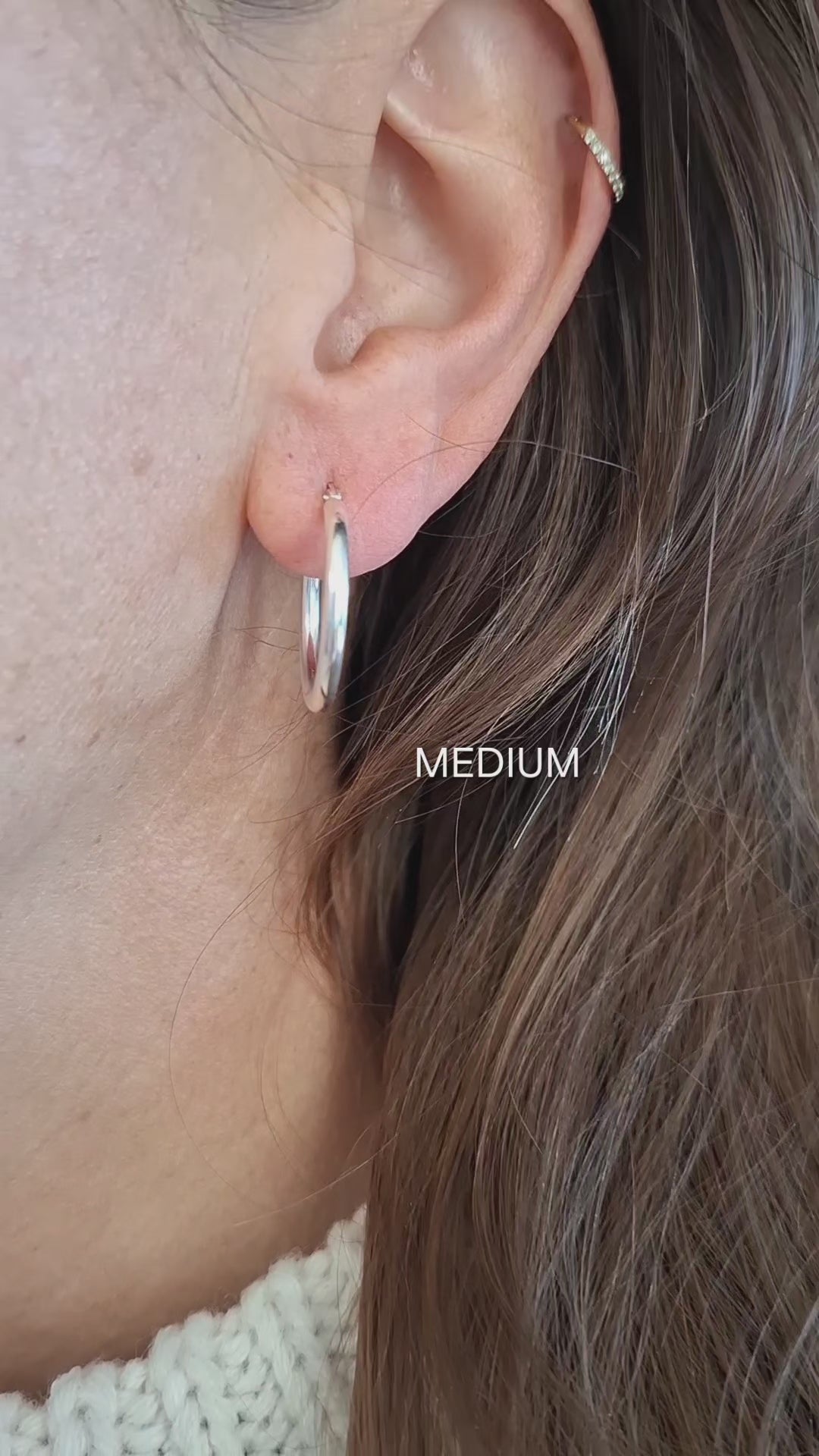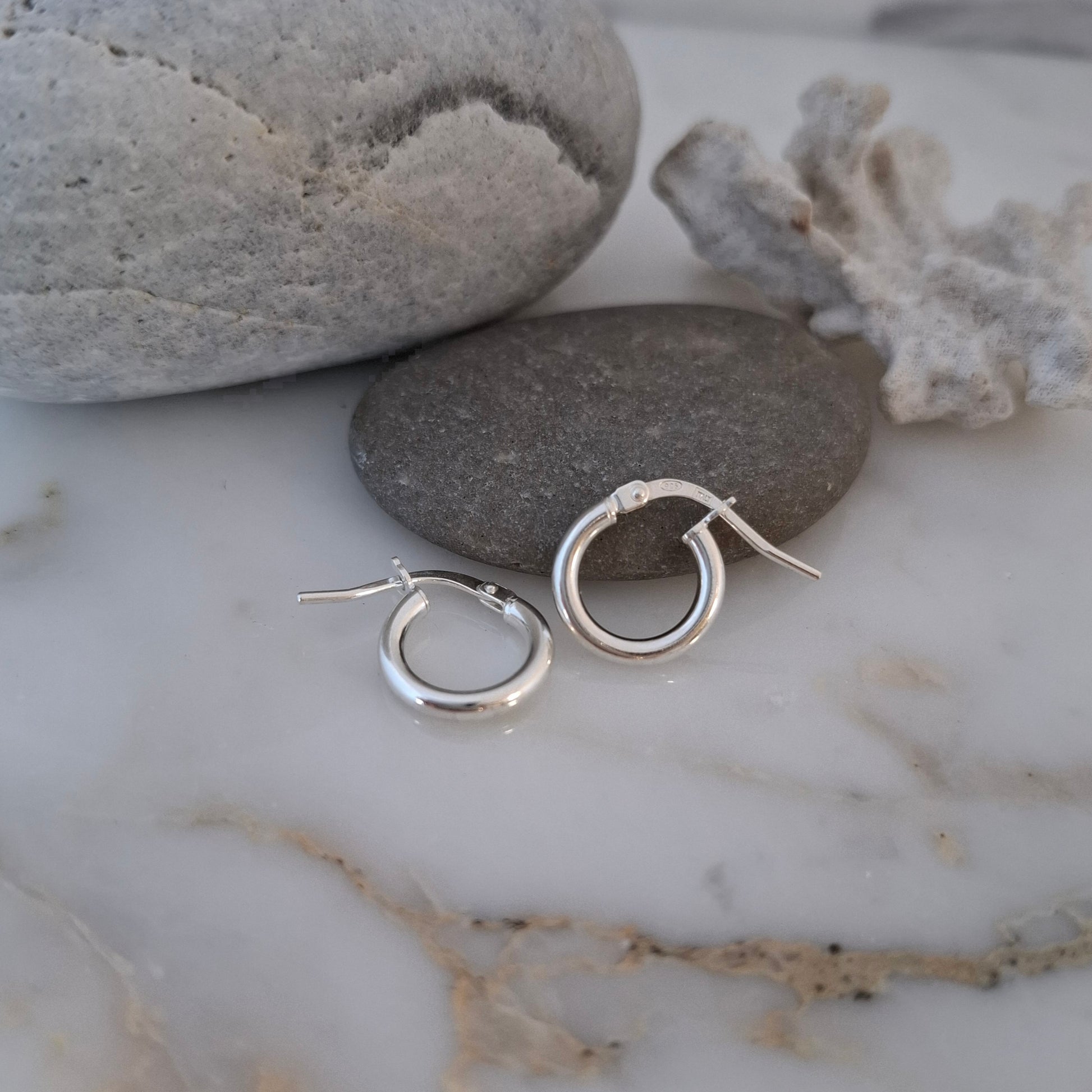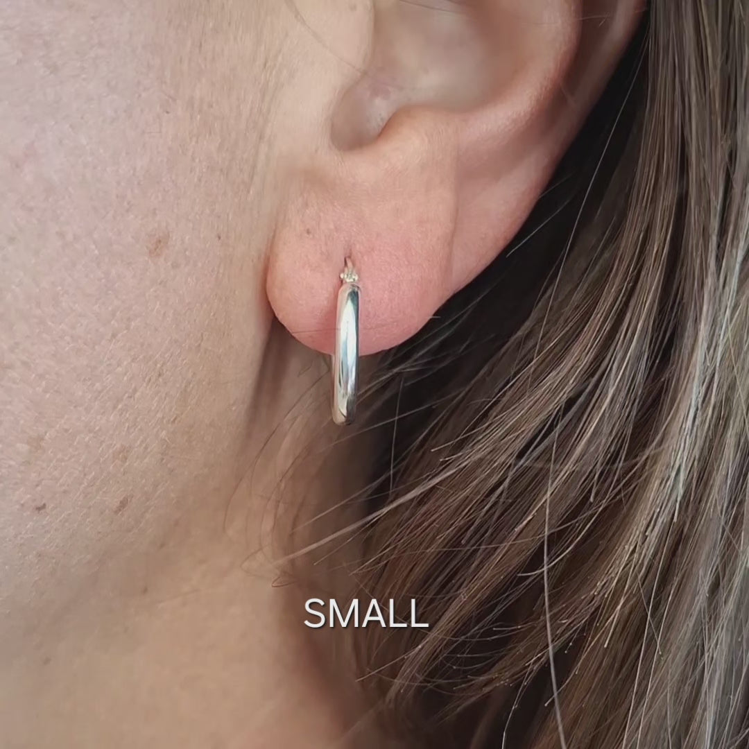 Their solid sterling silver construction means no denting or discolouration as hollow or plated hoops are prone to – just sleek, high-polish silver that holds its shape and shine.