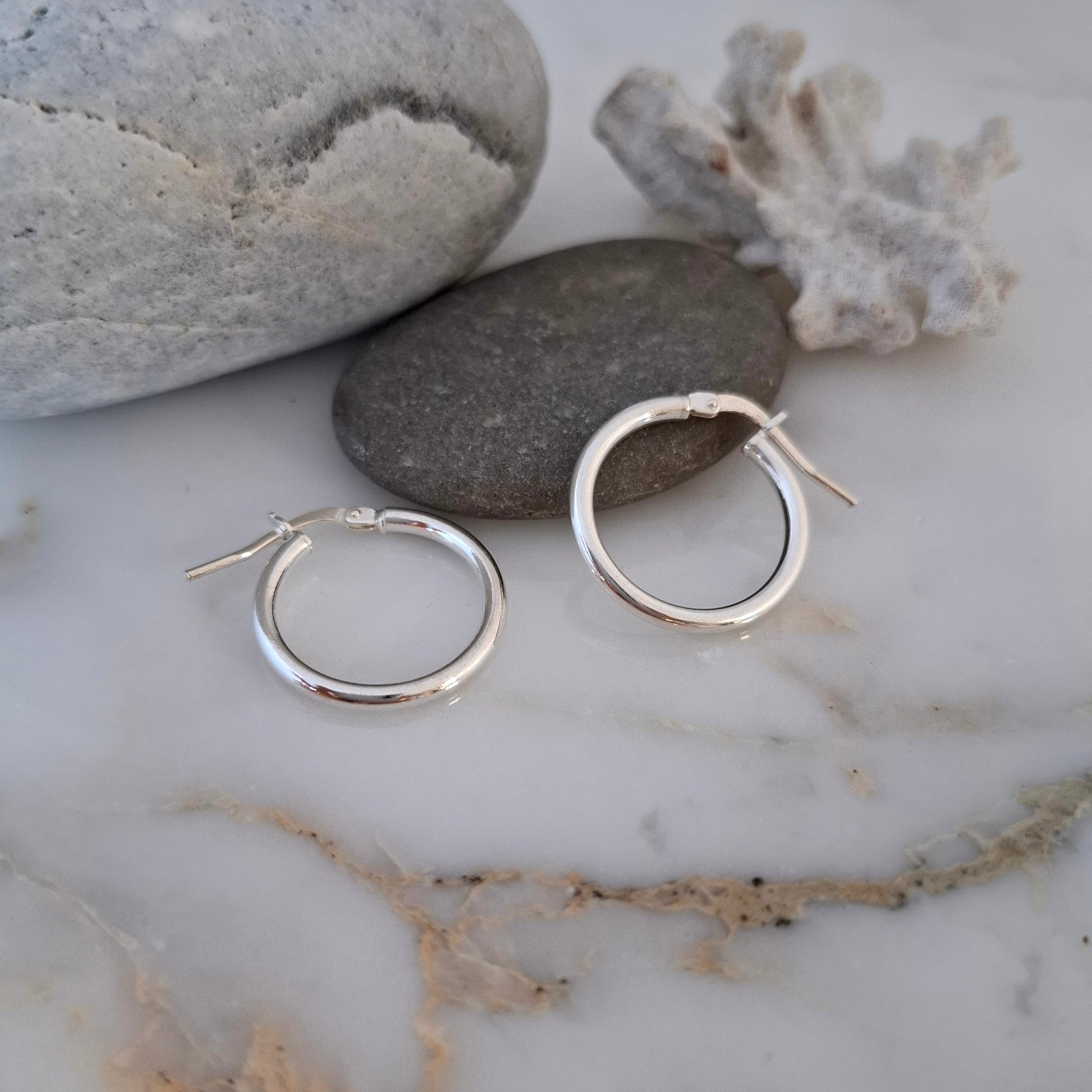Minimalistic elegance for every day – these solid sterling silver 2mm thick hoops are a classic a compliment to any outfit.