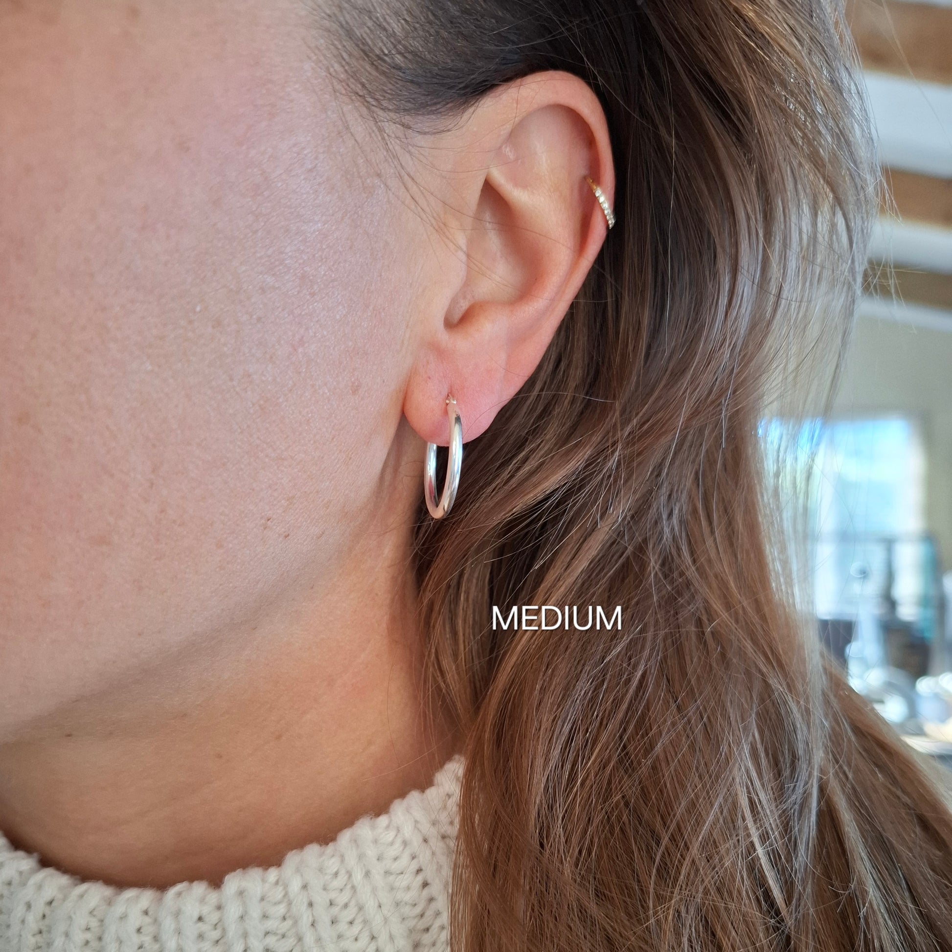 If you're searching for thicker silver hoops, or gold options take a look here. I offer 3mm as well as 4mm options for a chunky look and feel.