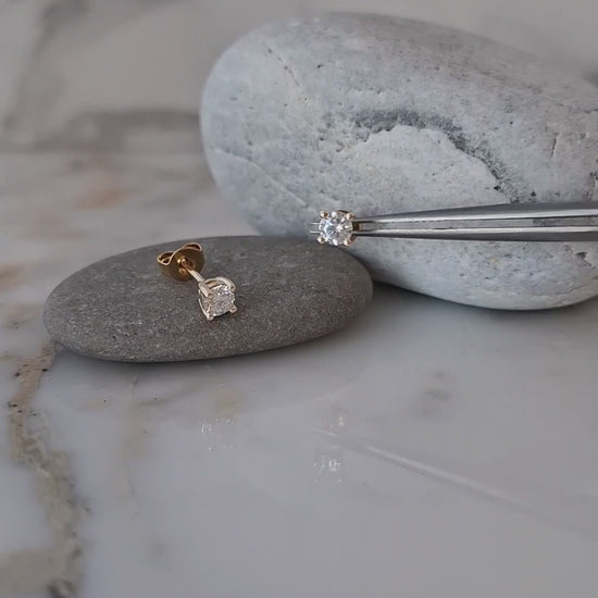 Introducing the perfect everyday earrings - Classic Lab Diamond Claw Studs! These timeless studs feature solid 9ct gold claws, each set with a 0.22ct Round Brilliant Cut Lab Diamond, Colour: E, Clarity: VS. Total diamond weight for the pair is 0.44cts.