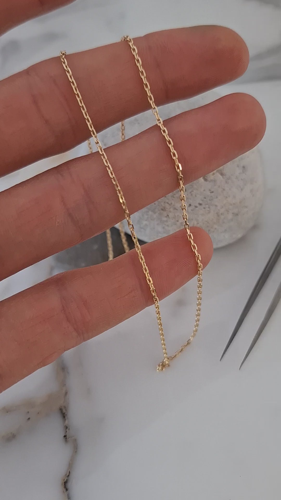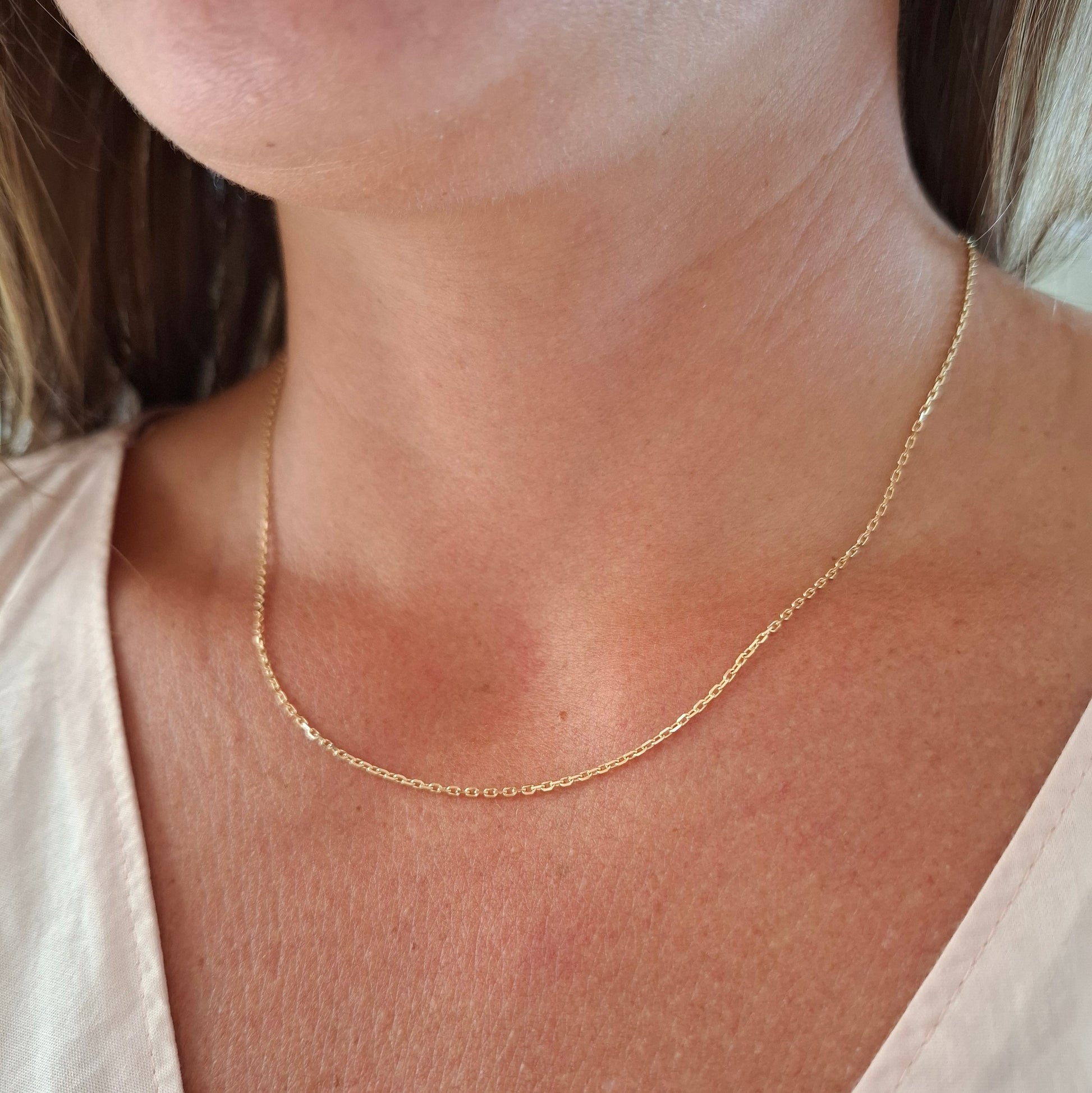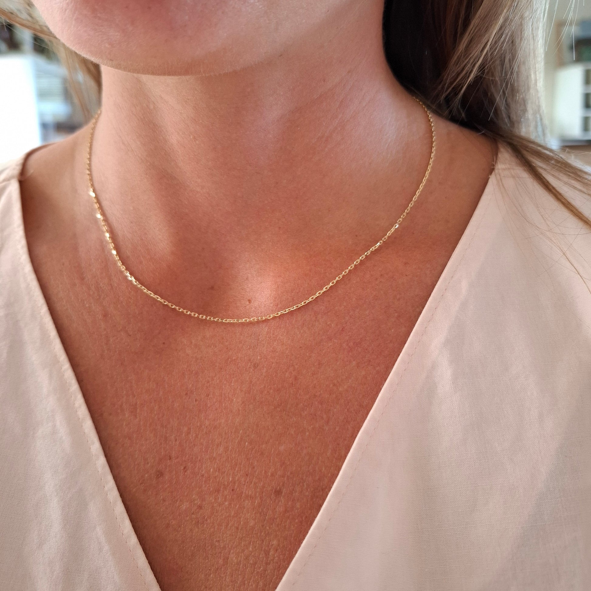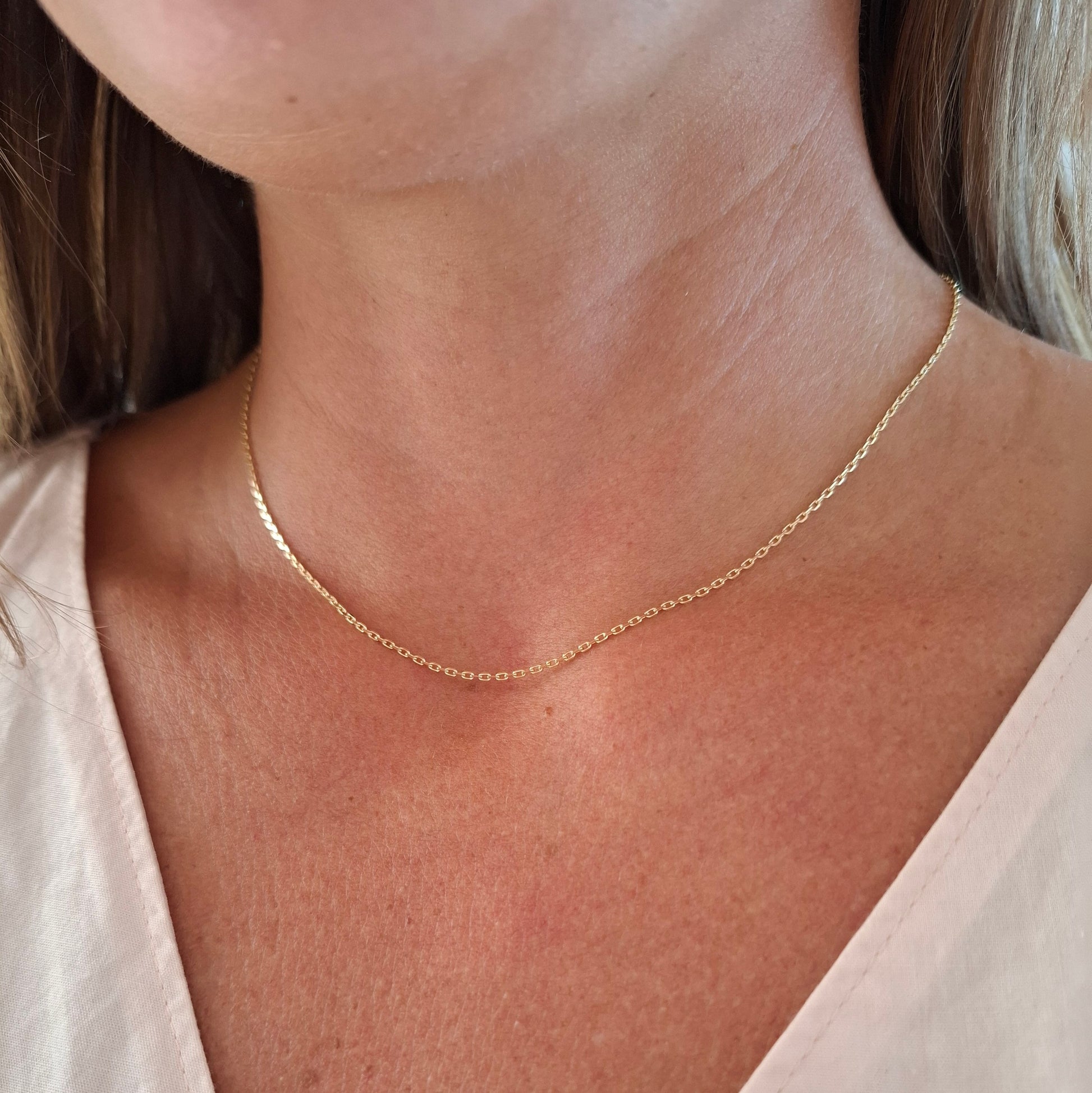 The perfect pendant chain or fine stack necklace, featuring elongated oval links with precision diamond-cut angles that shimmer beautifully in the light as you wear it.