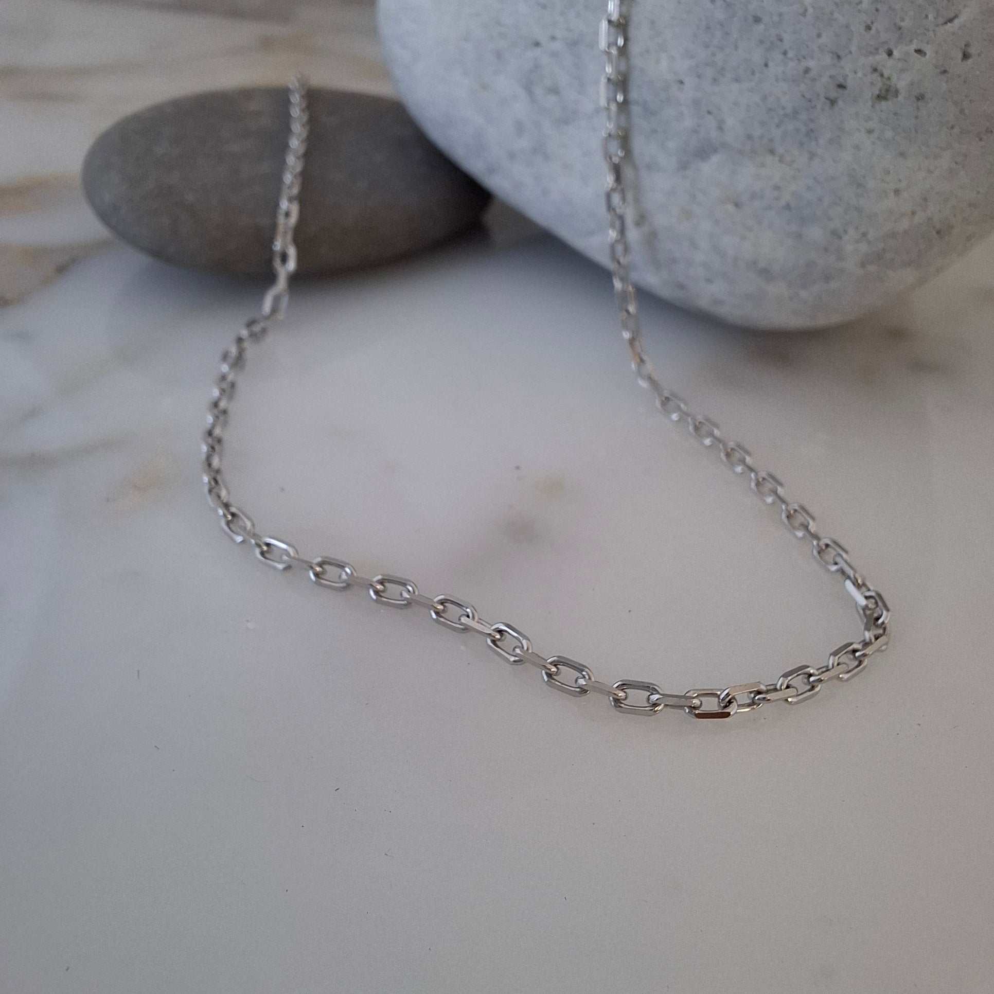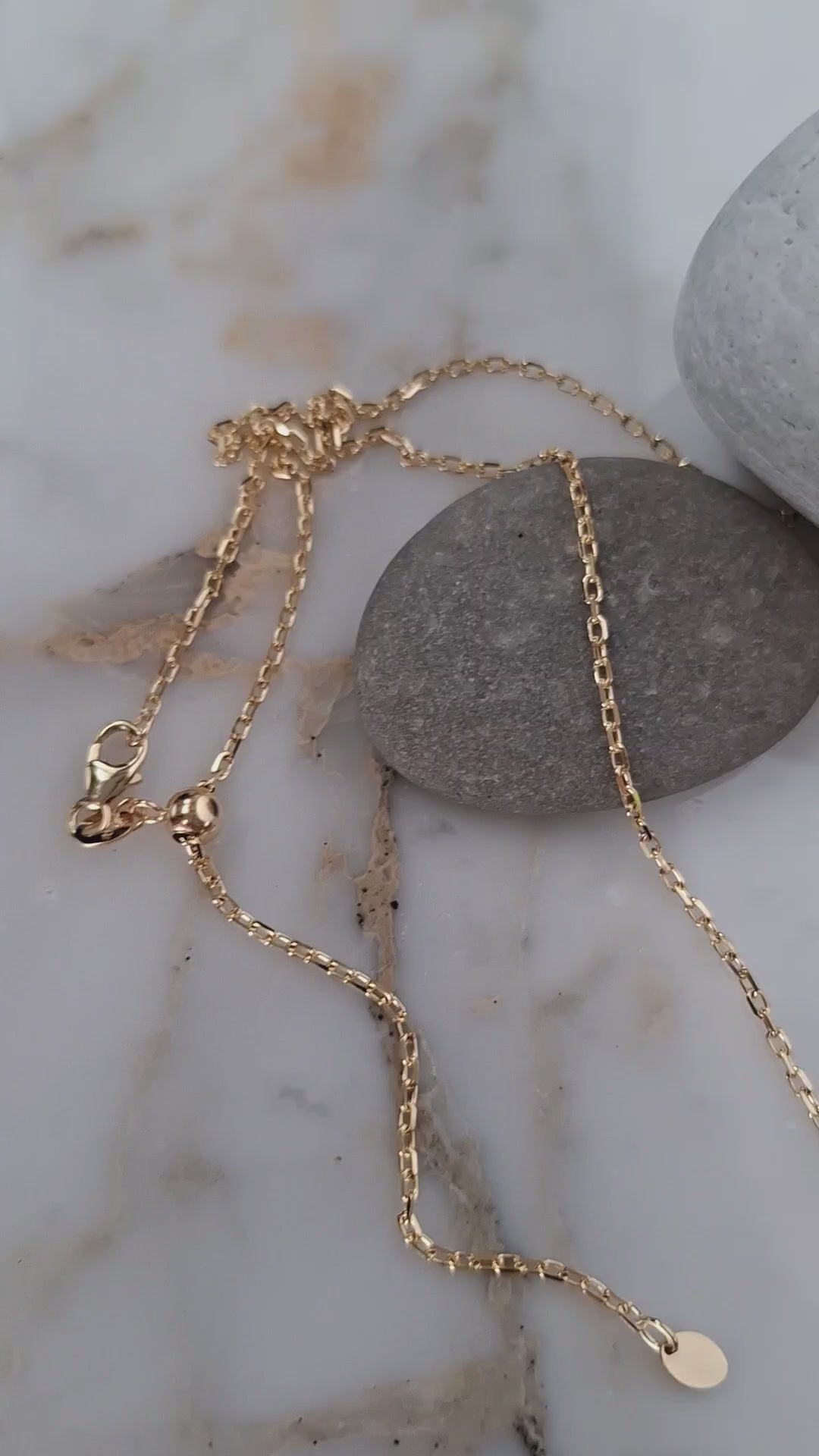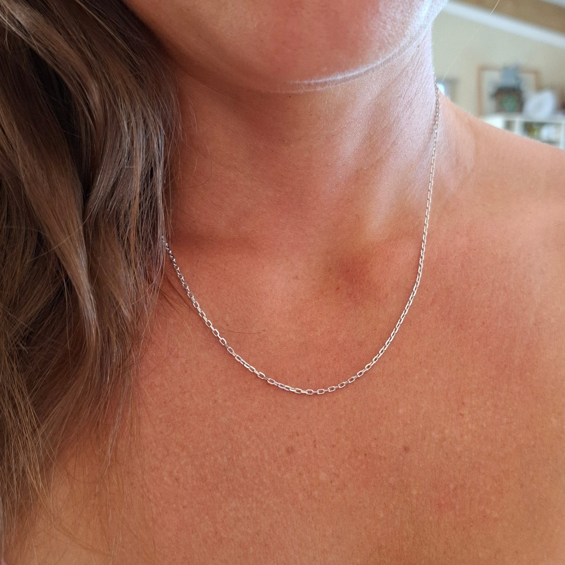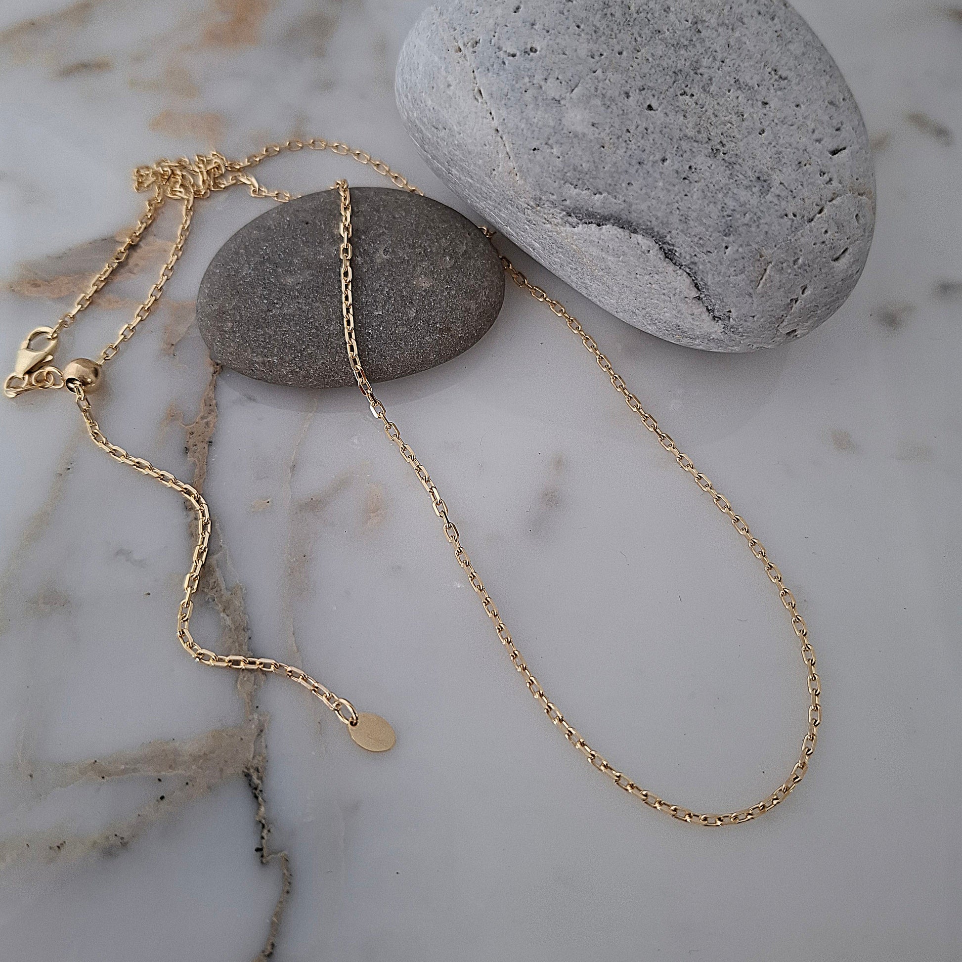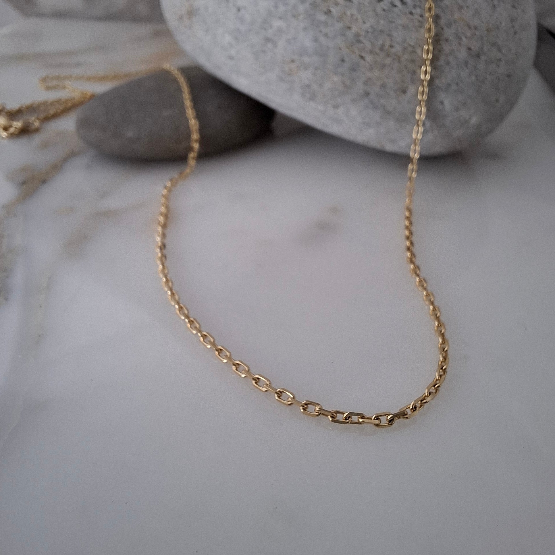The perfect pendant chain or fine stack necklace, featuring elongated oval links with precision diamond-cut angles that shimmer beautifully in the light as you wear it.