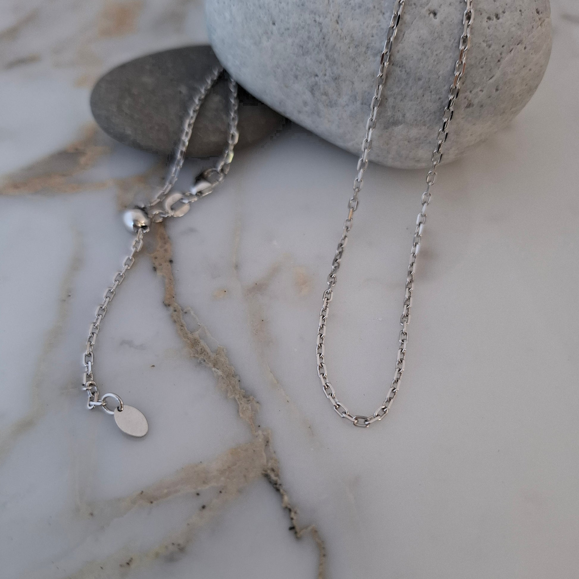 Length Guide – Please refer to the chain length guide at the bottom of the page to select your preferred length when ordering. The 45cm and 50cm Slider are favourites, as they allow you to adjust the length with ease (45cm/50cm being the longest).