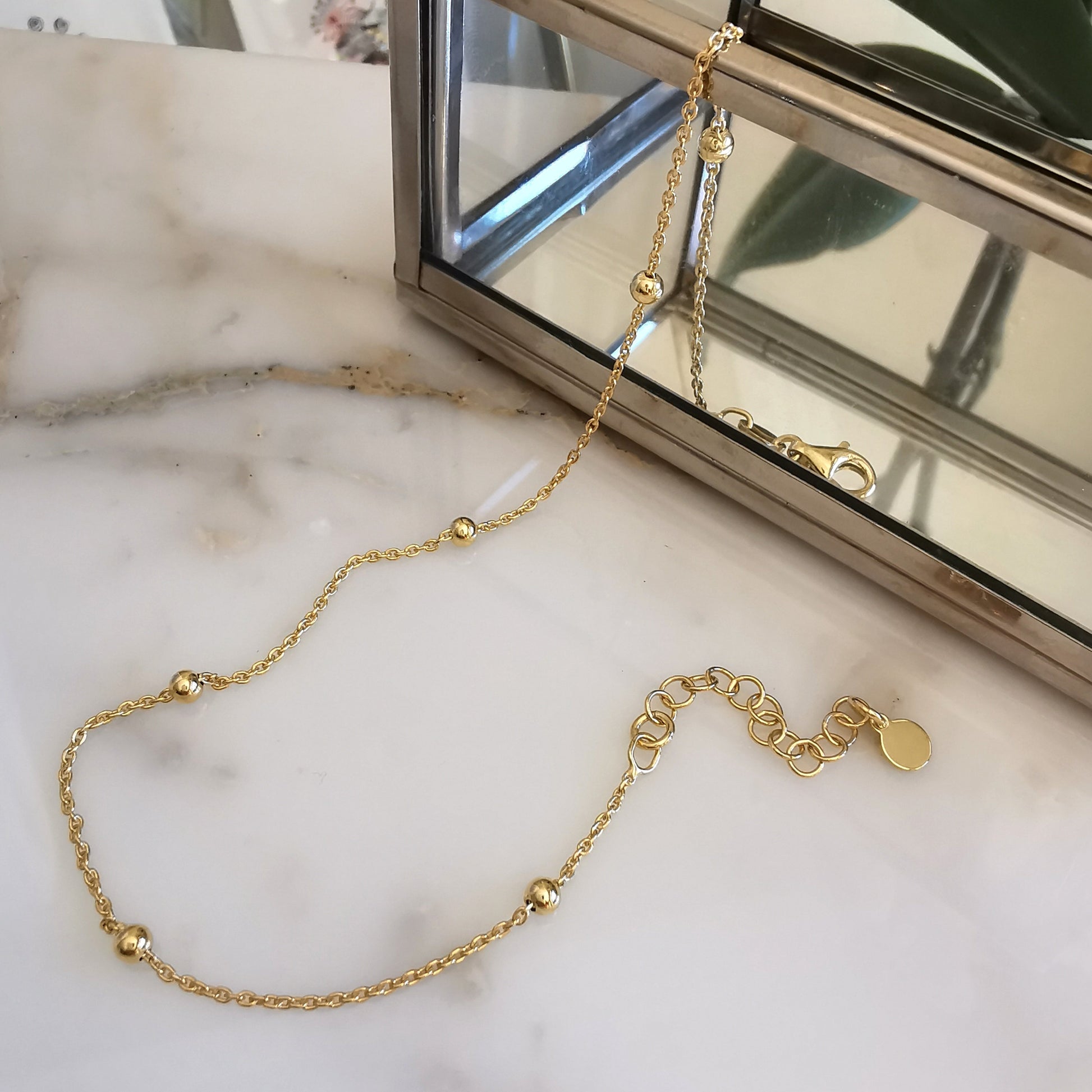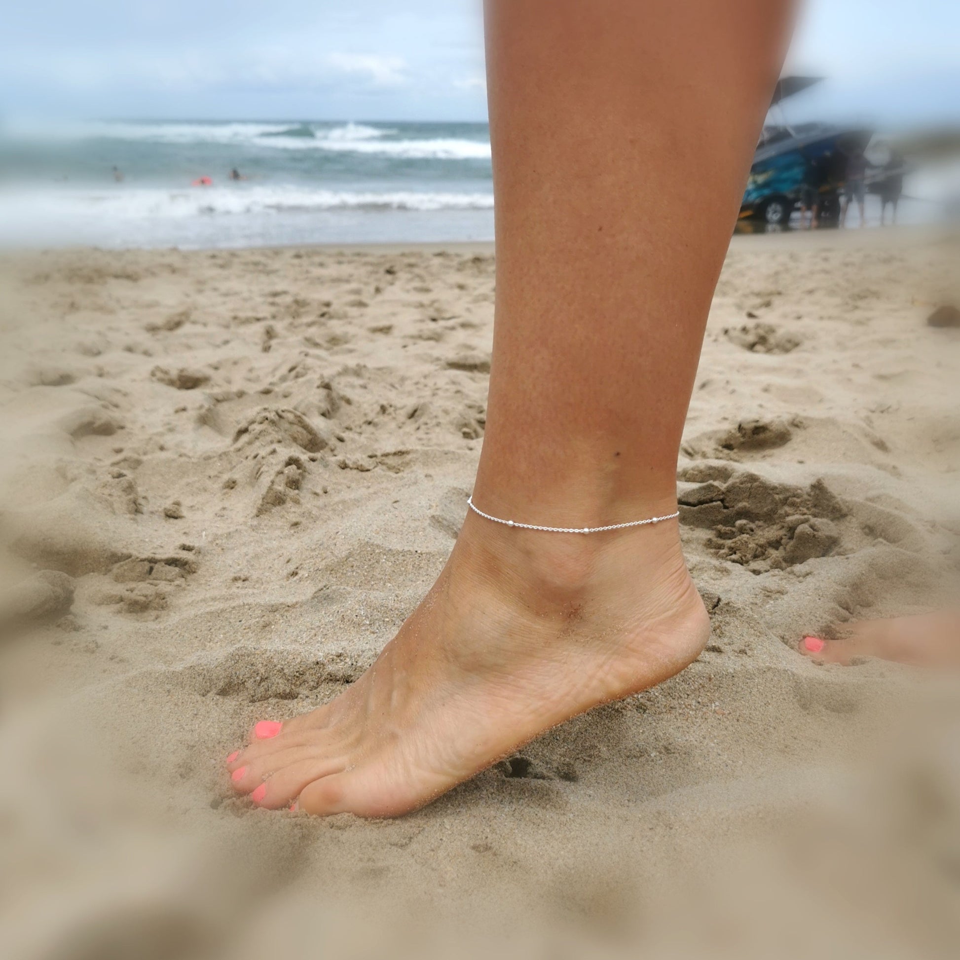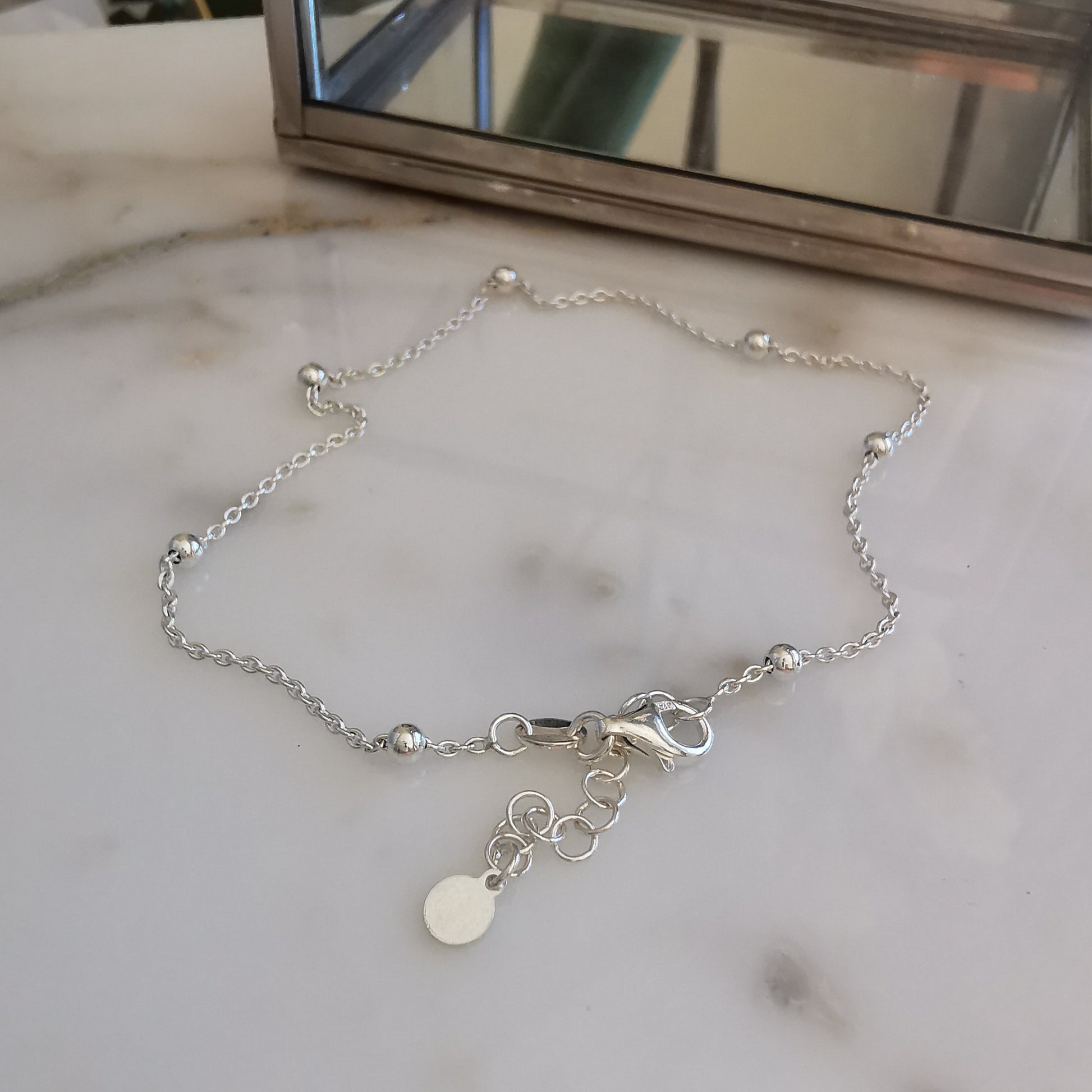 Dainty Silver Beaded Anklet