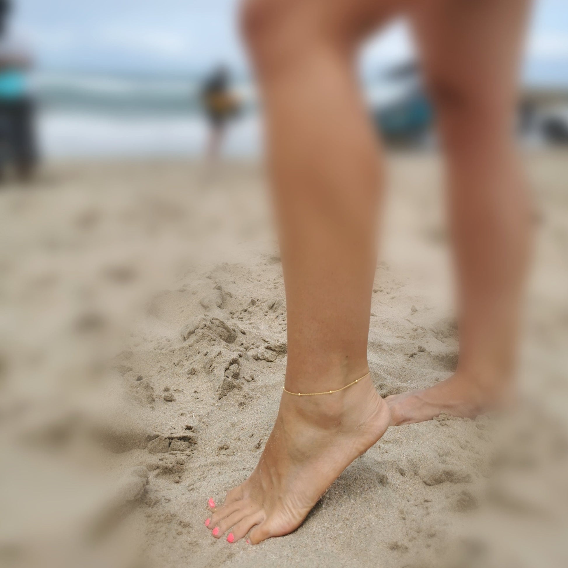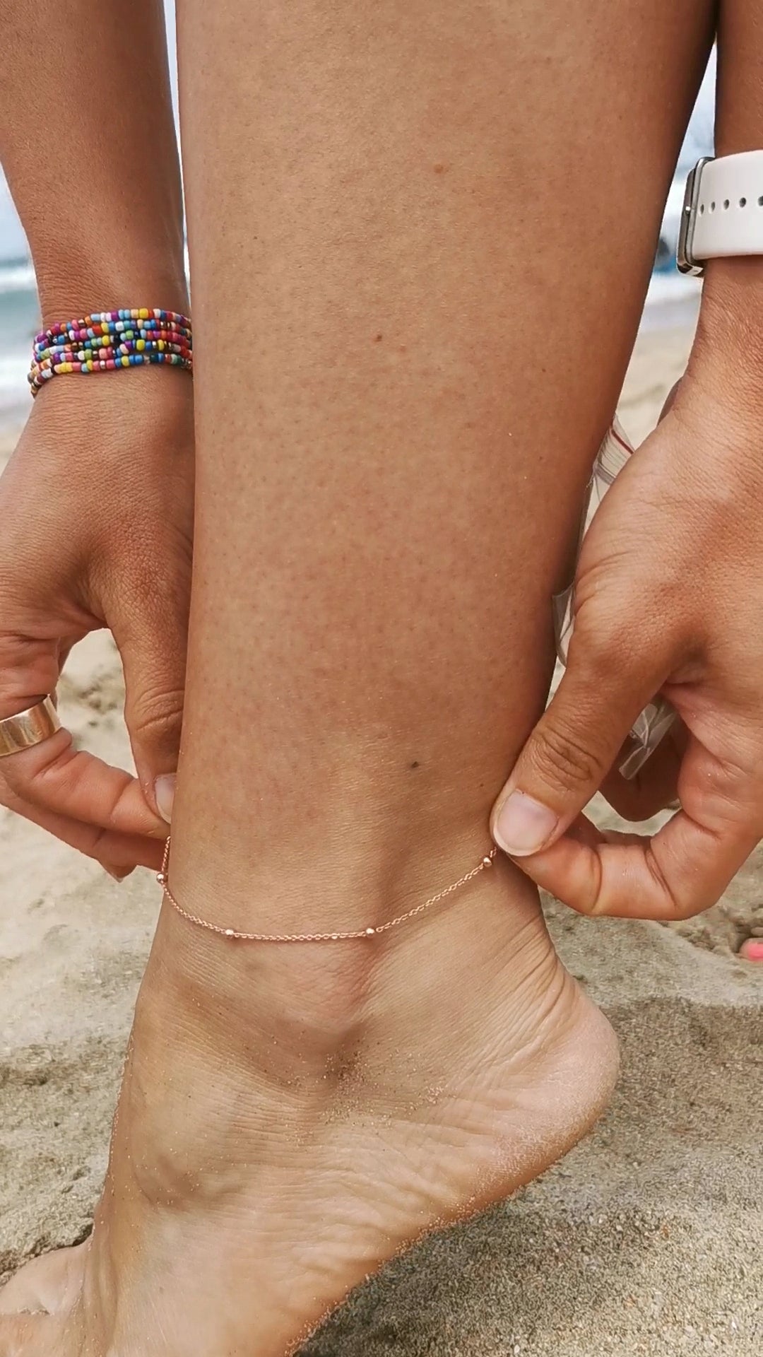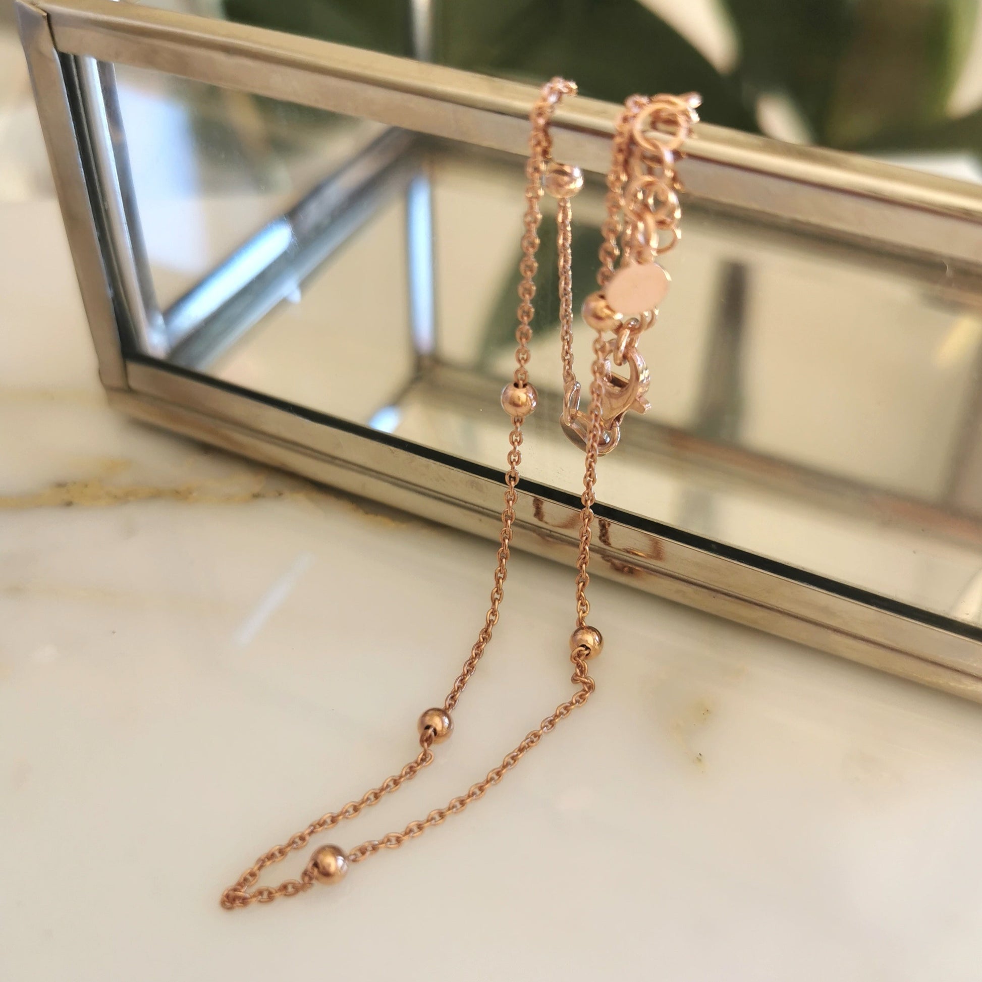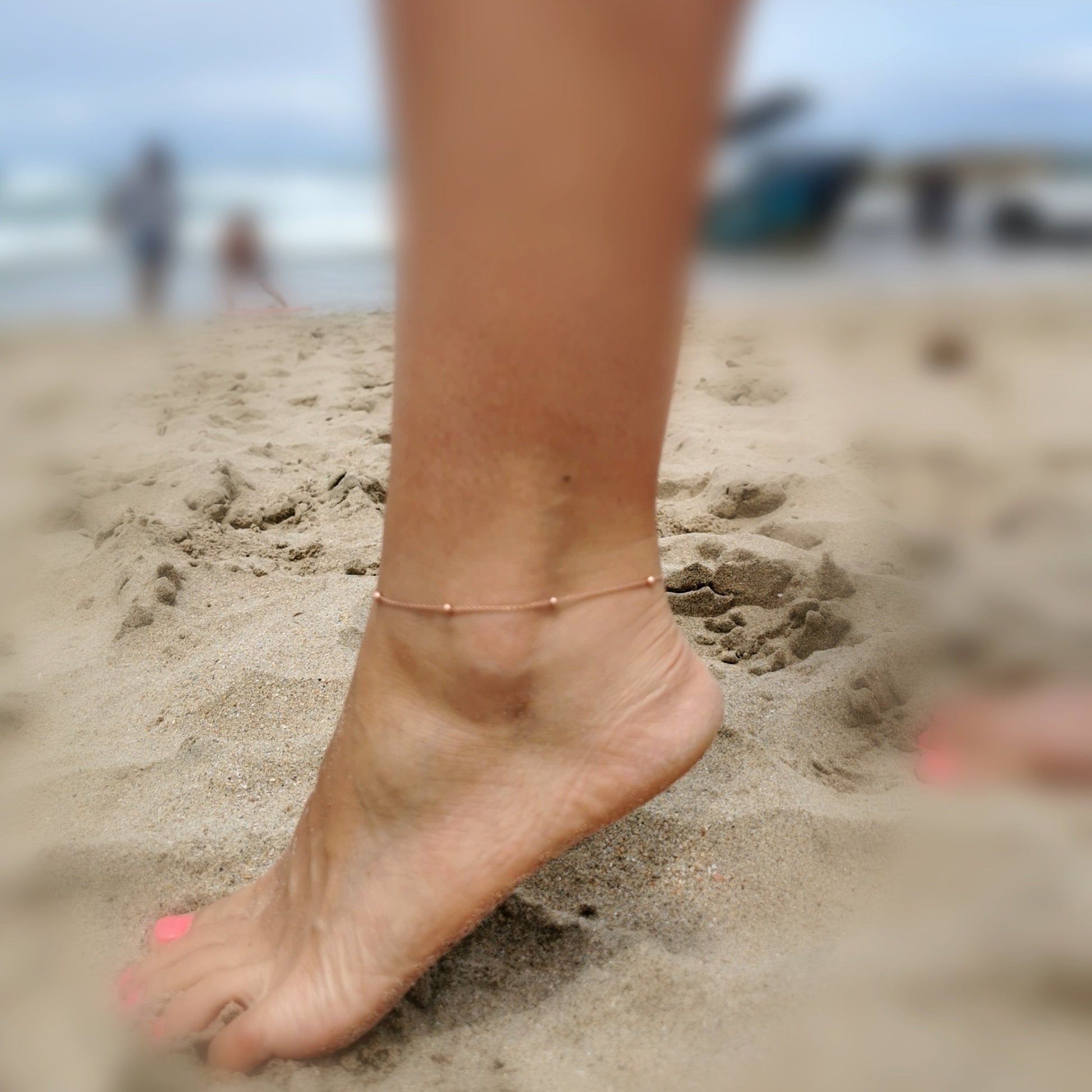 Dainty Silver Beaded Anklet