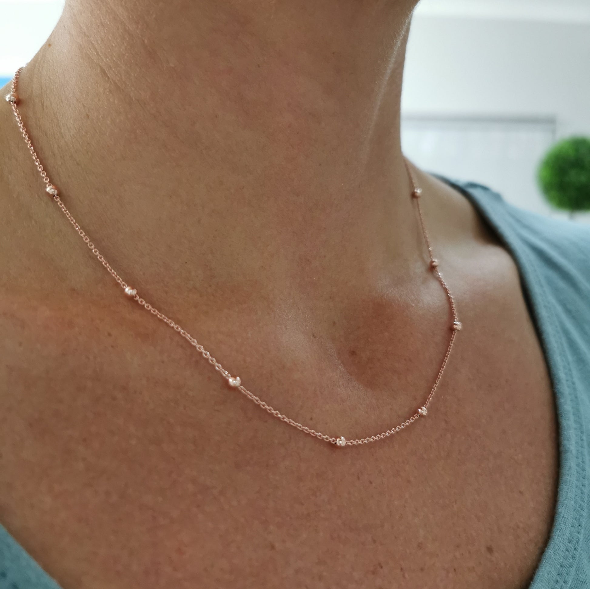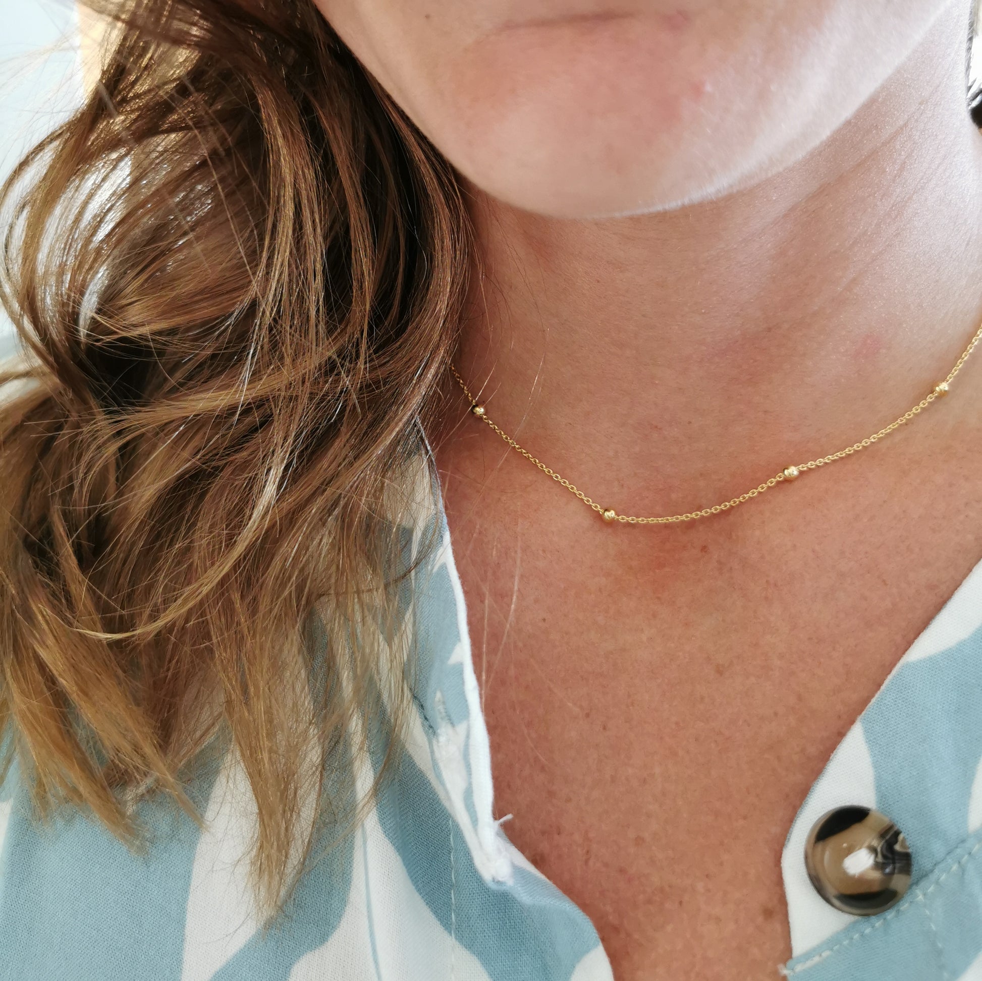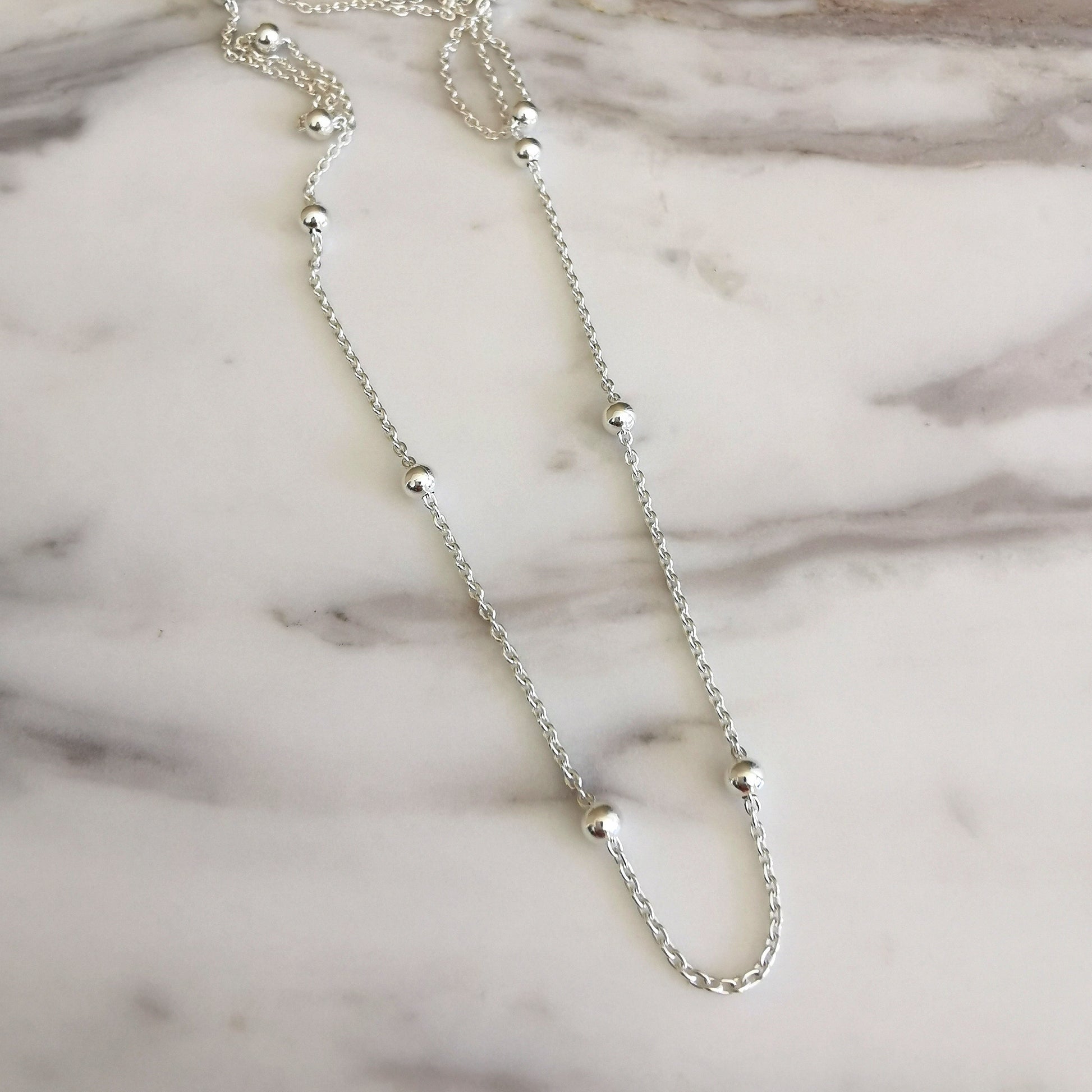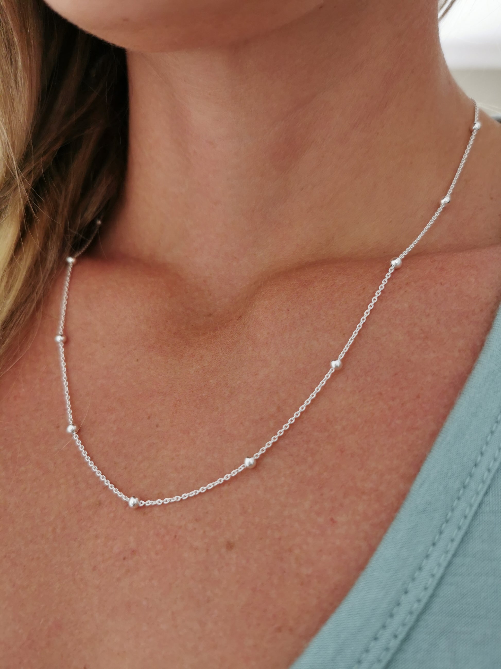 This dainty silver beaded necklace is perfect for everyday wear. It's delicate enough for work but adds just the right touch of elegance for evening out.