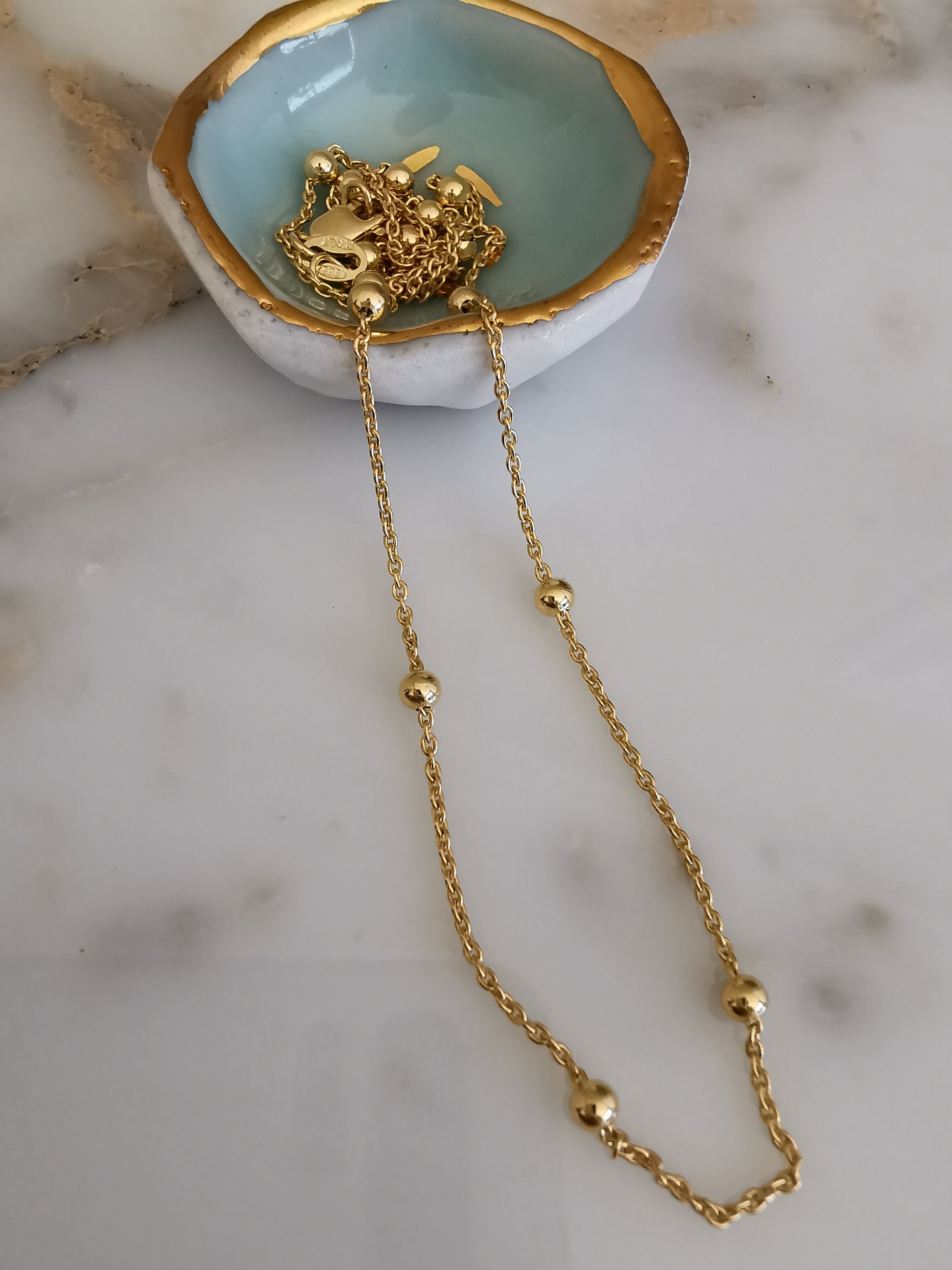 Care for plated options: Avoid water, perfume, and sleeping in your necklace to keep the plating looking its best.