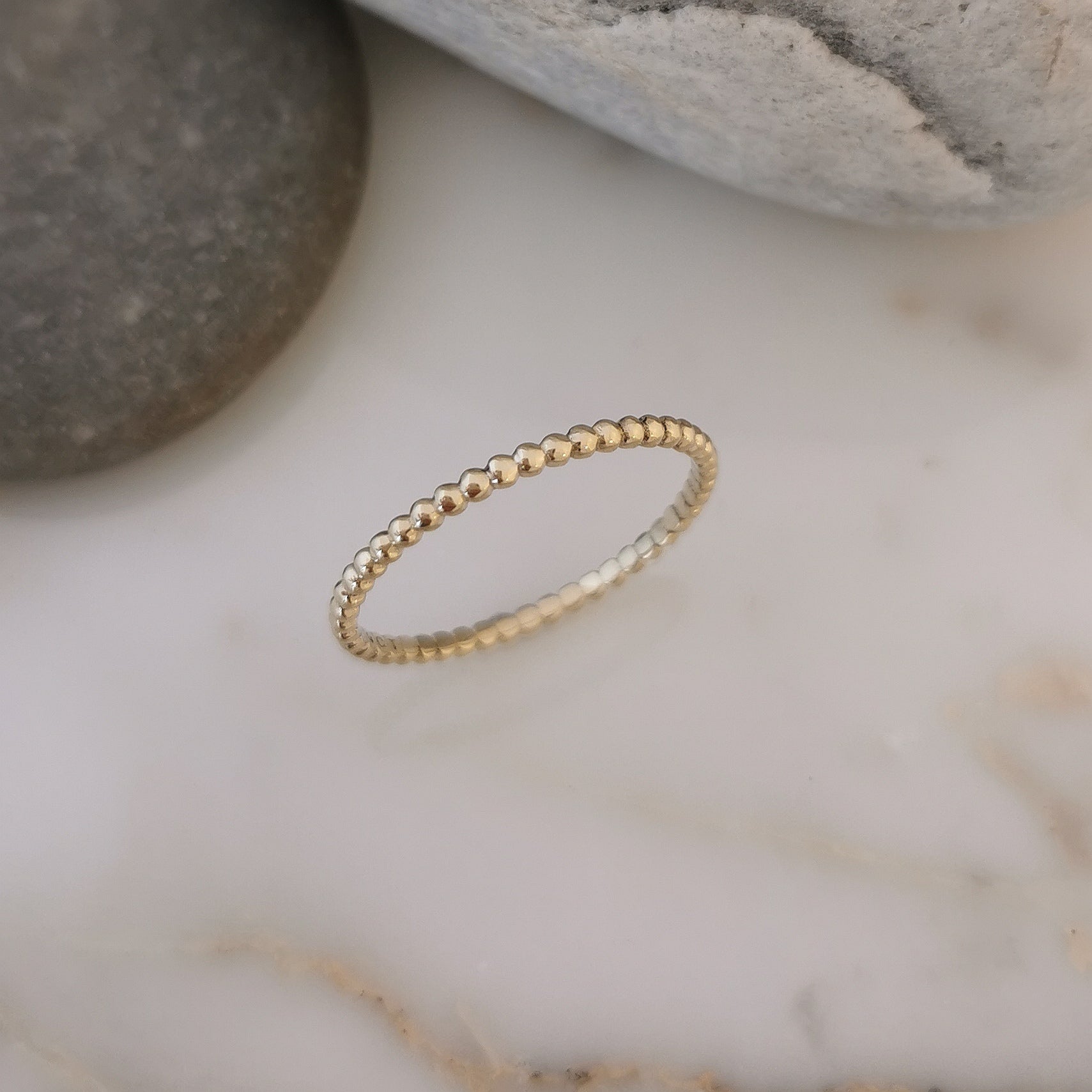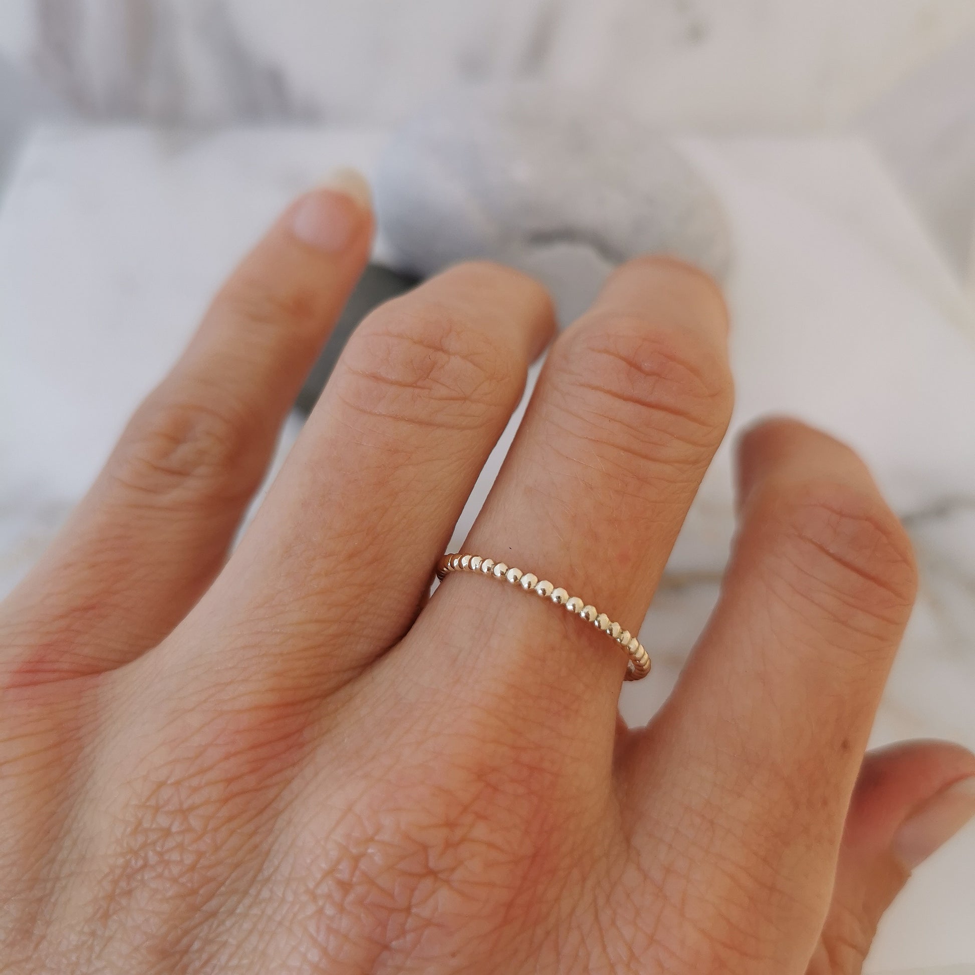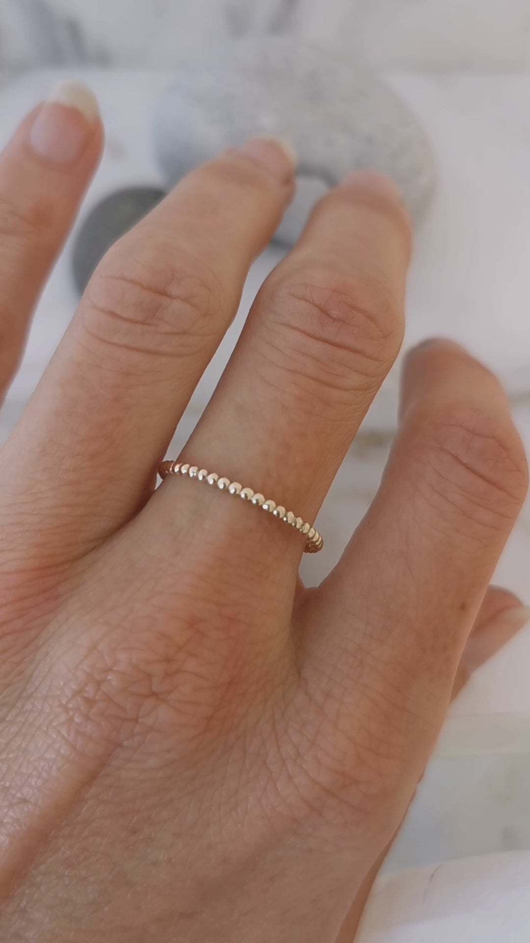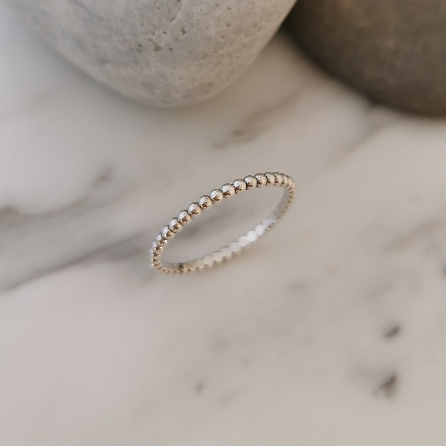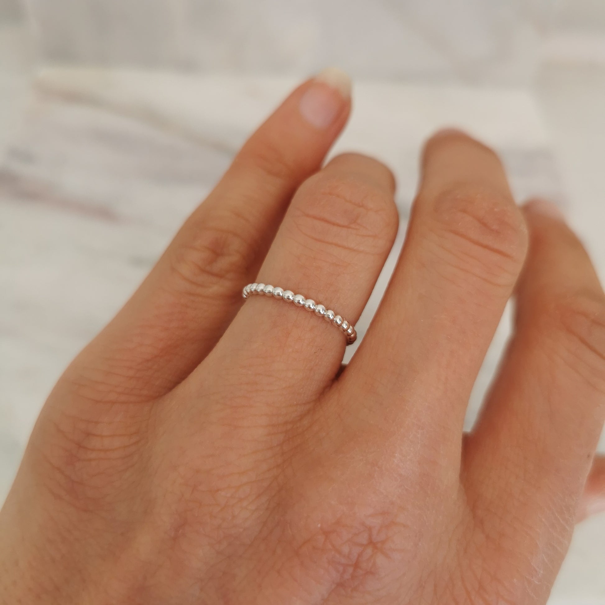 The ring measures +-1.6mm wide and consists of tiny solid precious metal bobbles which give it a delicate effect.