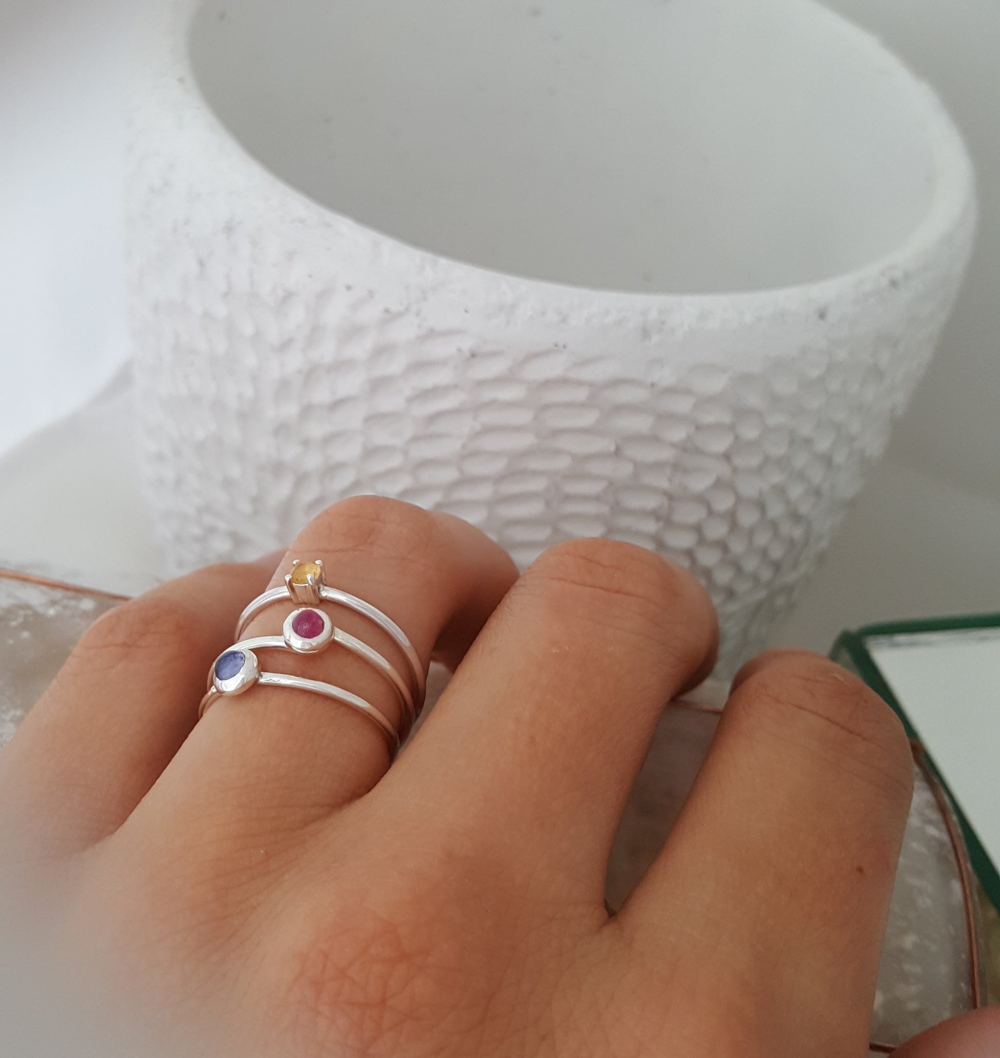 This dainty ring looks stunning when worn alone or stacked as seen in some of the pics here. If you love the look but would like an alternative gem or metal, feel free to get in touch.