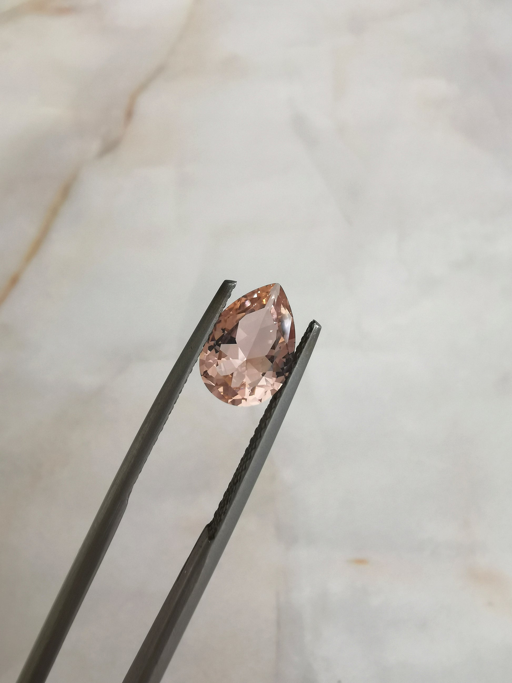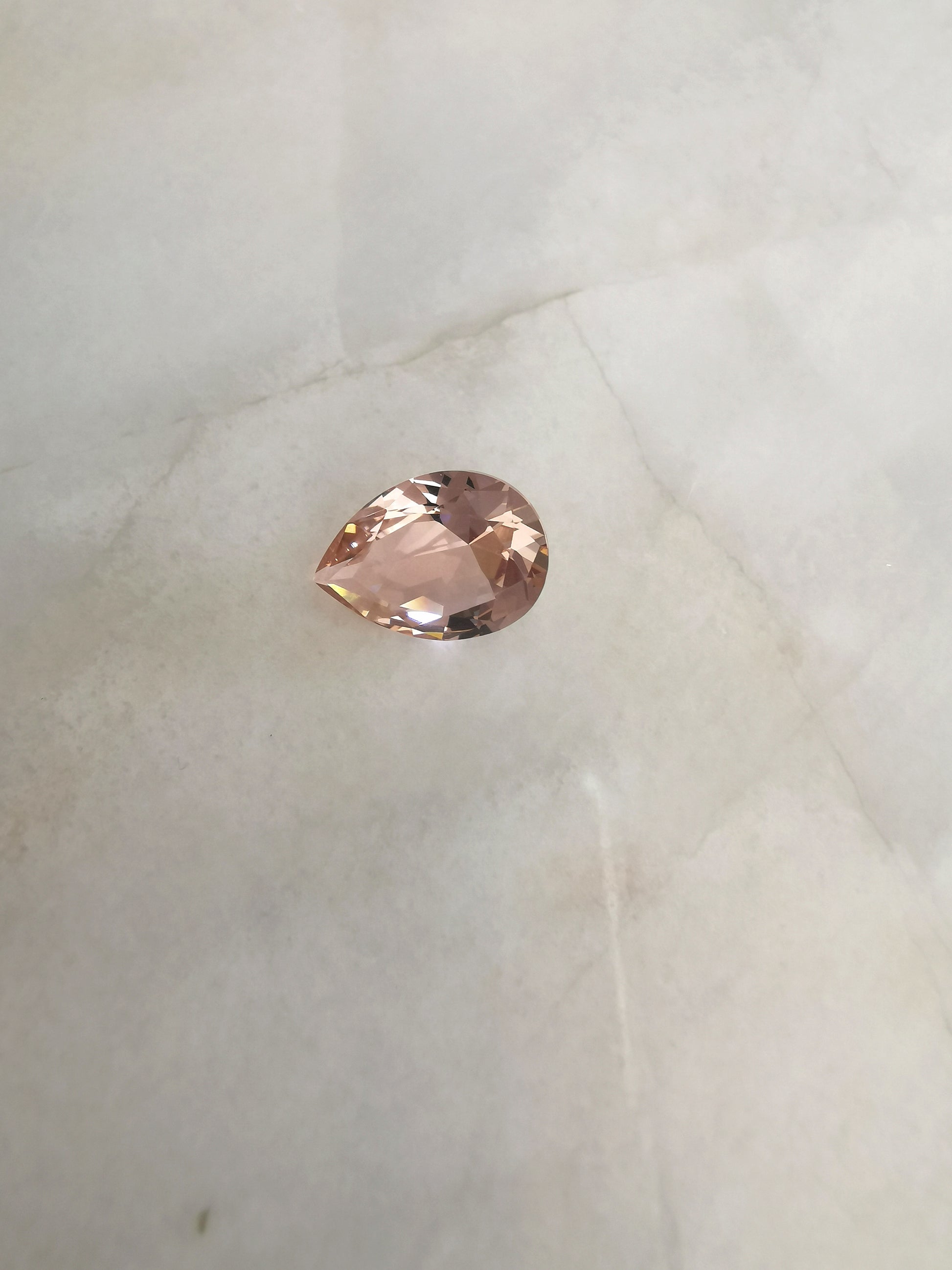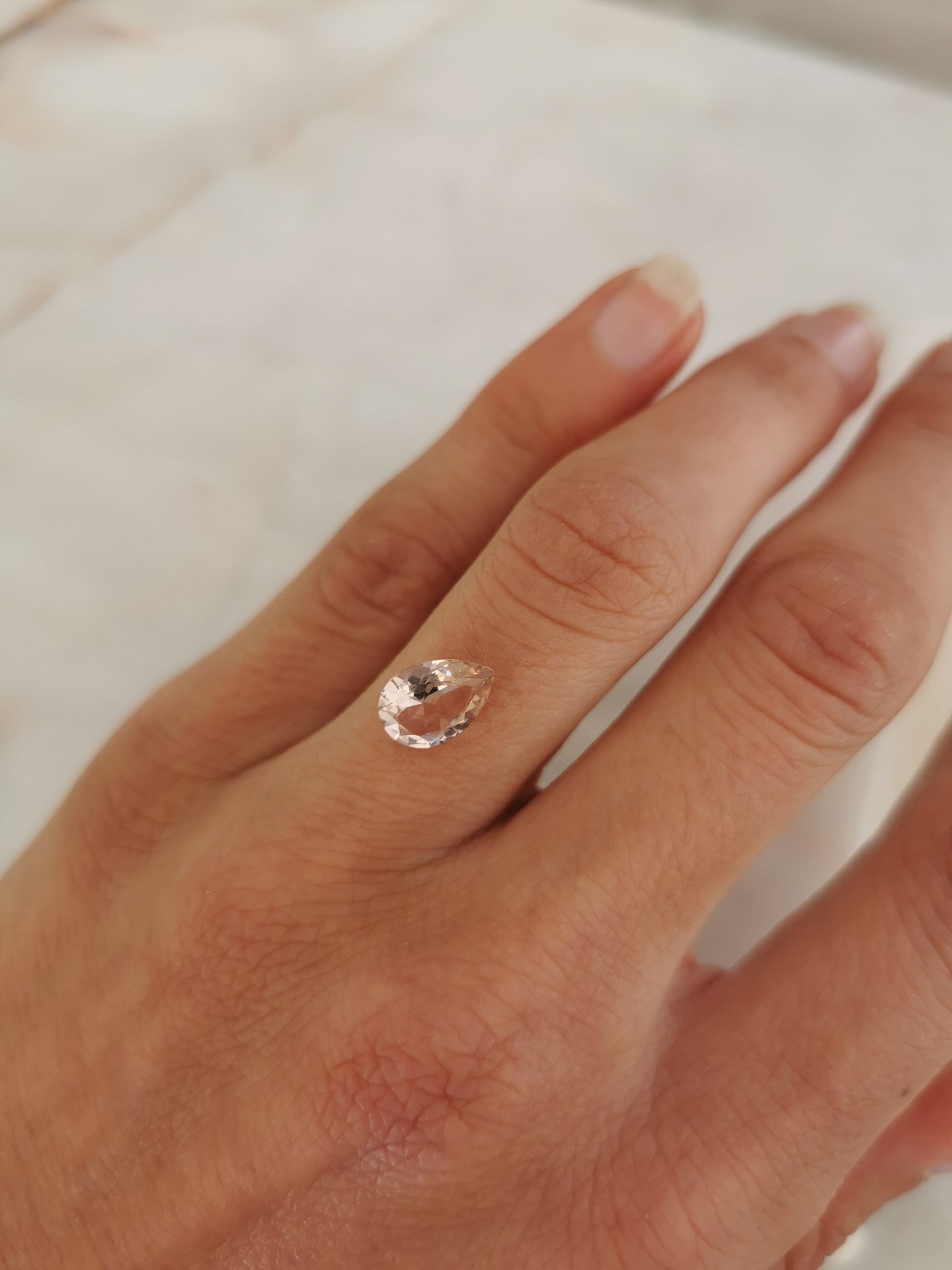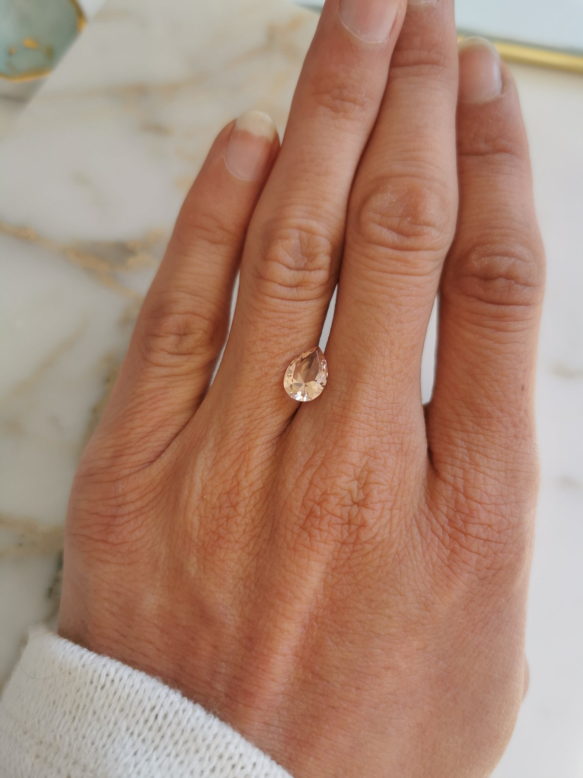 Measuring 10mm by 7mm it's the largest Pear Cut Morganite Nano Crystal available and makes a real statement.