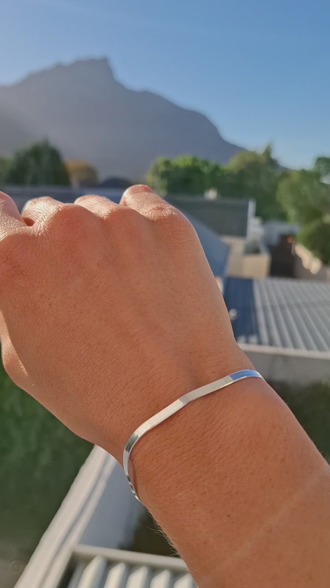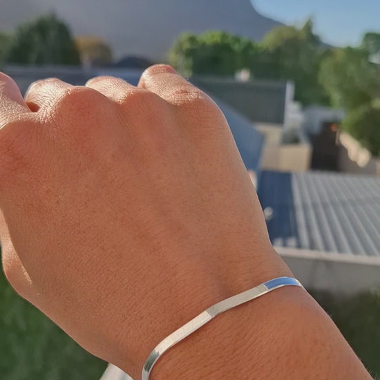 This striking 3.5mm wide solid sterling silver Herringbone bracelet is the perfect addition to any outfit that calls for subtle elegance. It looks stunning when stacked with other fine bracelets or worn on its own as a simplistic statement piece - from chic daywear to evening elegance.