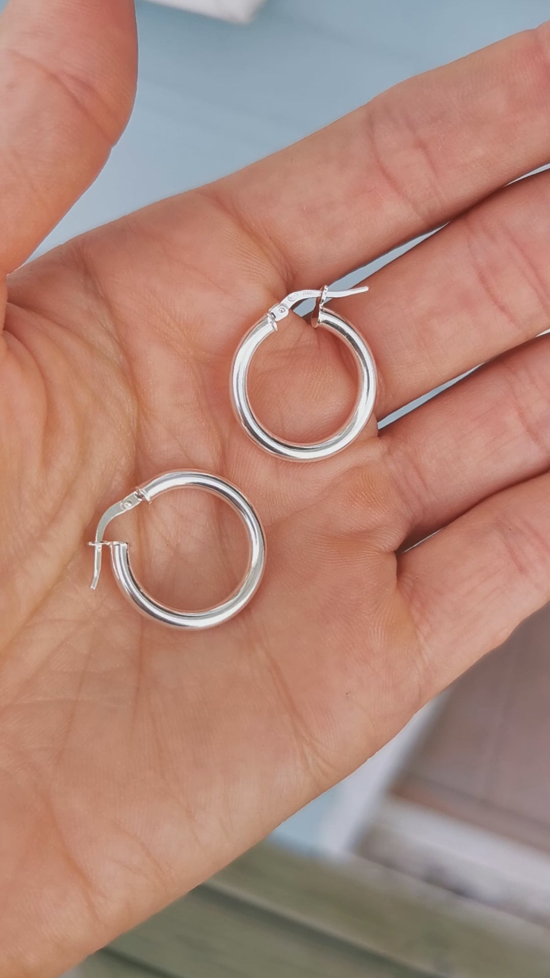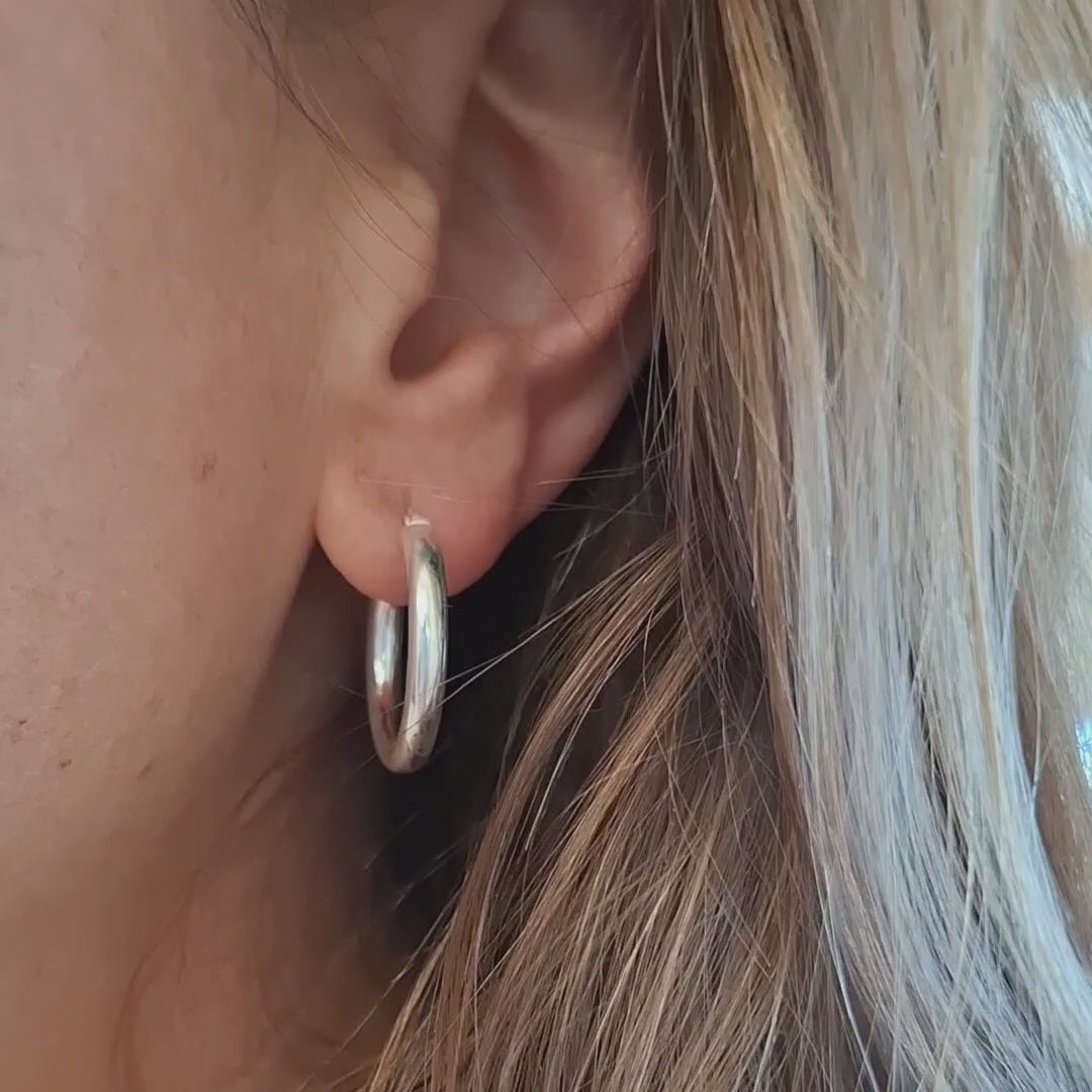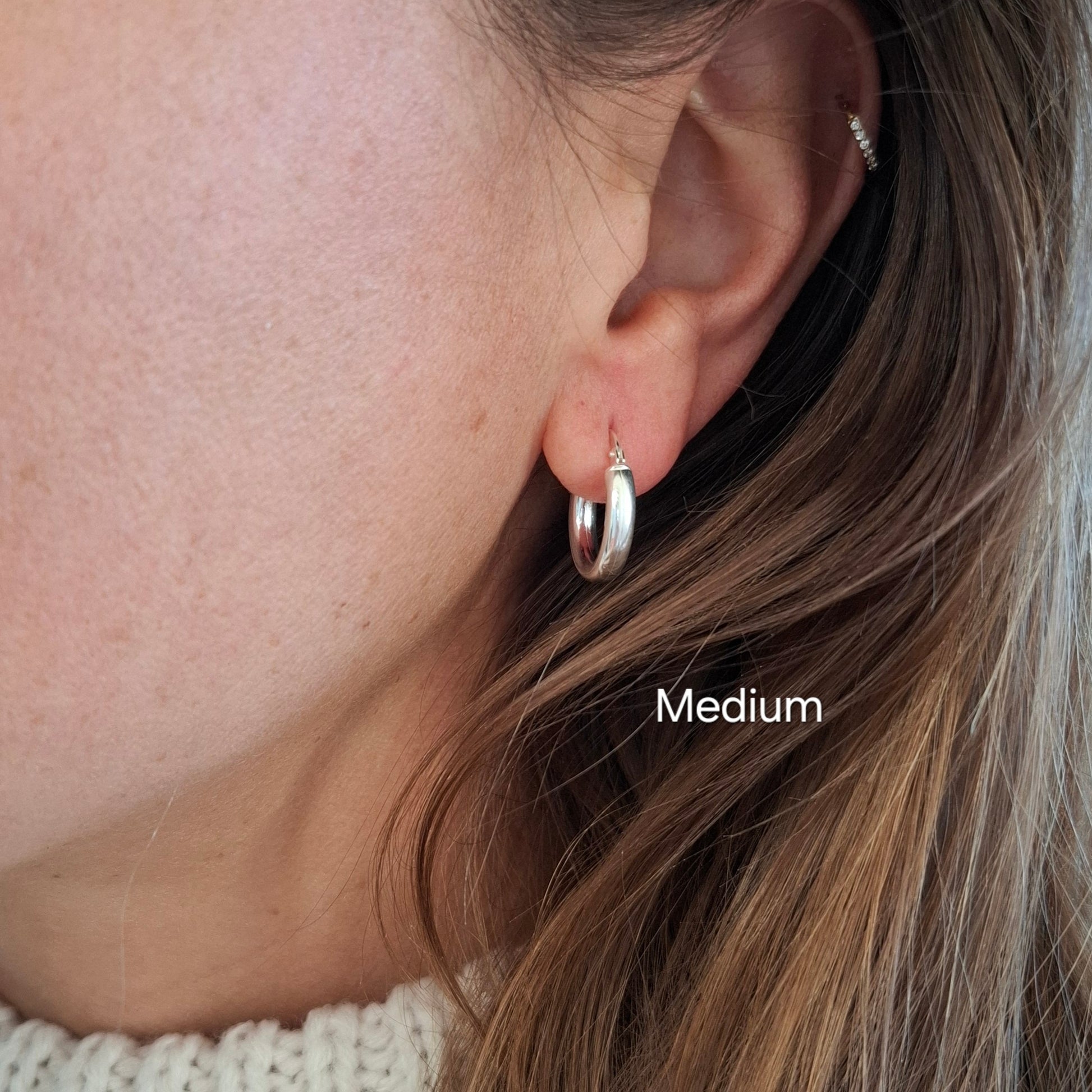 Made out of solid sterling silver, these classic style hoops won't lose their colour or get dented and damaged as hollow earrings are prone to do.